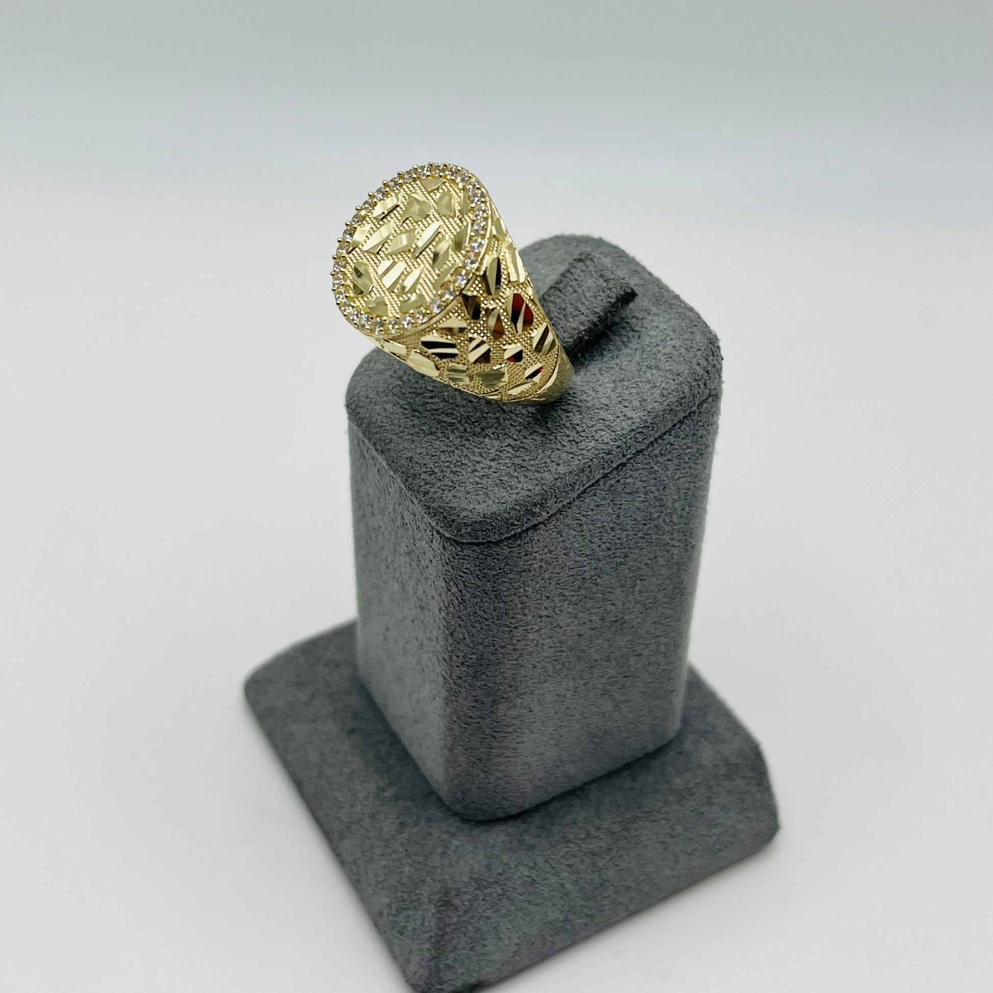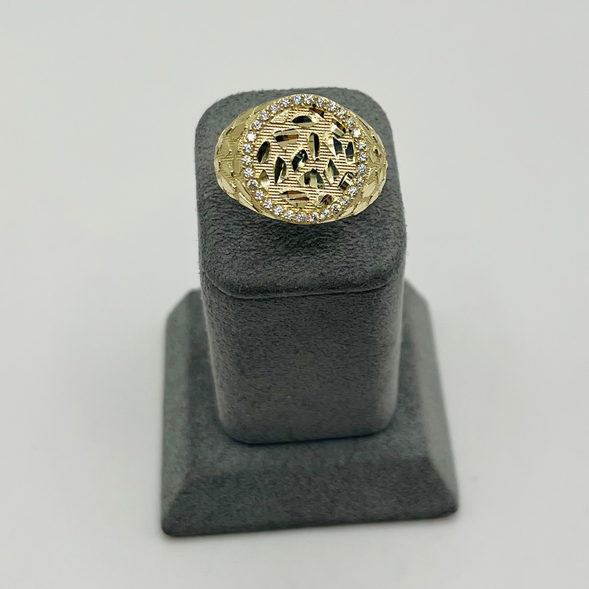 Elevate your everyday elegance with this stunning 10k gold nugget ring, featuring a brilliant round cubic zirconia center stone framed by a sparkling border. The flat top design creates a modern, sophisticated silhouette that catches light from every angle, while the textured nugget band adds distinctive character and visual interest. Perfect for those seeking affordable luxury without compromising on style, this piece delivers the glamour of fine jewelry with everyday wearability. A versatile addition to any collection that transitions seamlessly from casual to formal occasions.