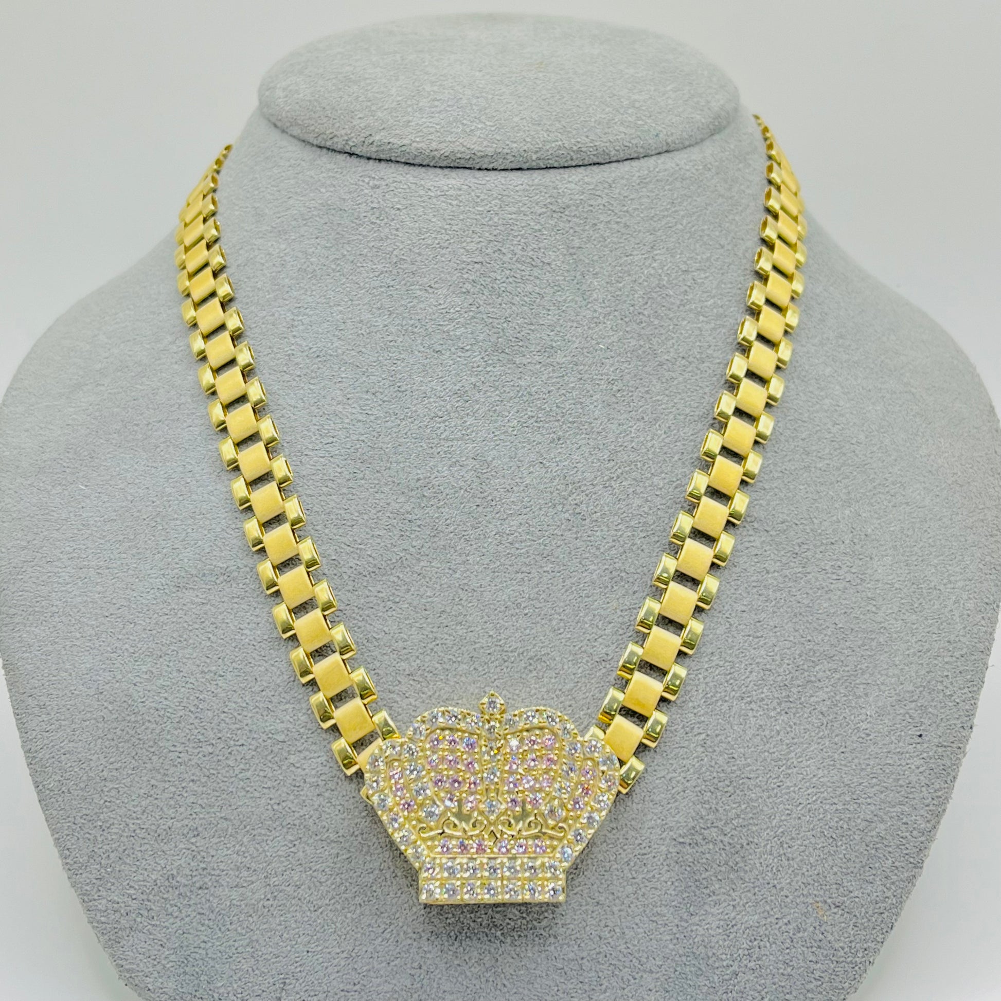 Level up your drip with this 10K Gold 8mm RX Chain, featuring a bold iced-out crown charm that commands attention. Set with sparkling white and pink cubic zirconia stones, this piece blends luxury and street style effortlessly. Crafted for kings and trendsetters, this chain is built to shine—royalty never looked this good! 👑✨