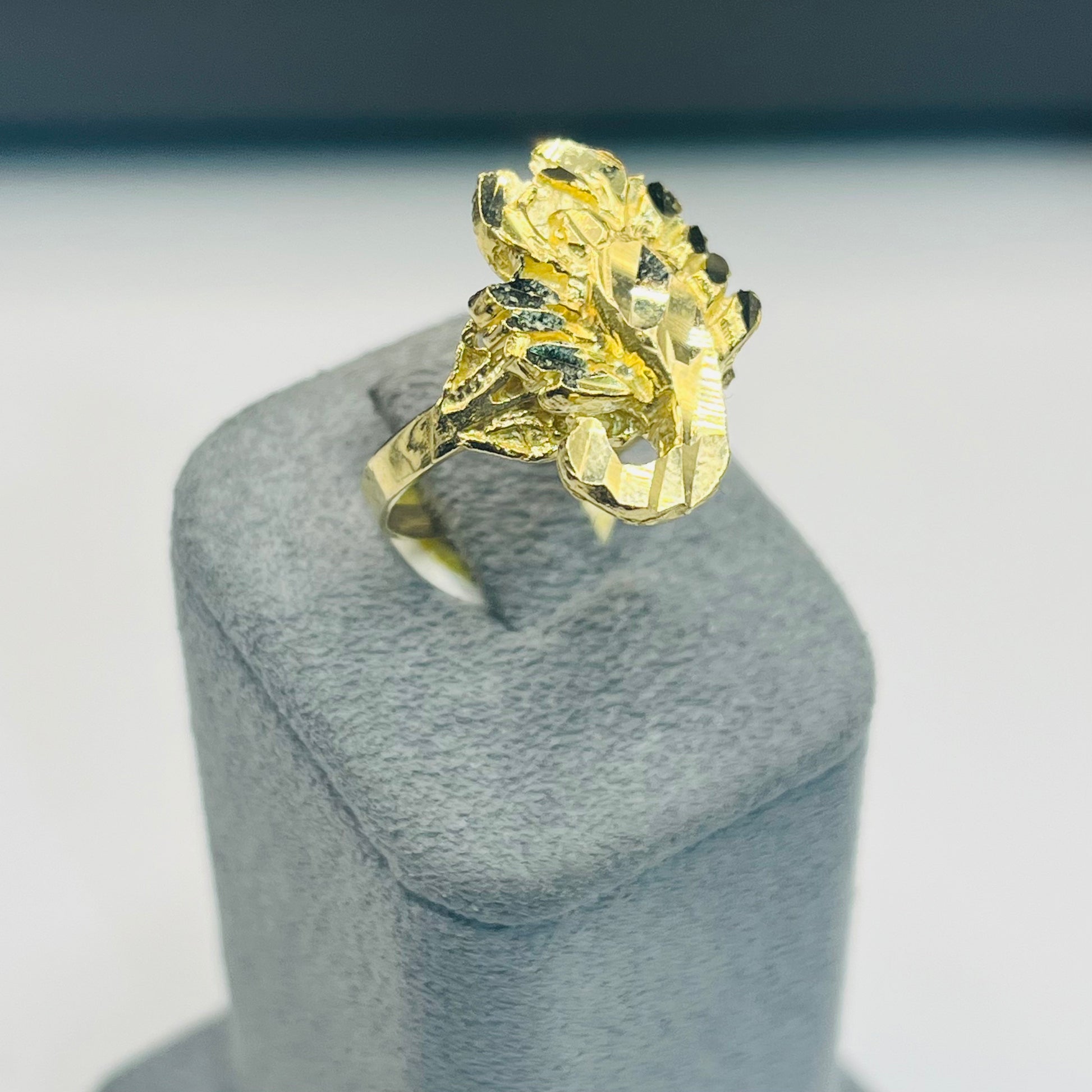 Bold and fierce, this 10K Gold Scorpion Ring showcases an intricately crafted scorpion design, symbolizing strength and resilience. The textured details and polished gold finish bring this striking piece to life, making it a standout accessory for those who embrace power and confidence. A perfect addition to any jewelry collection, this ring is both stylish and symbolic.