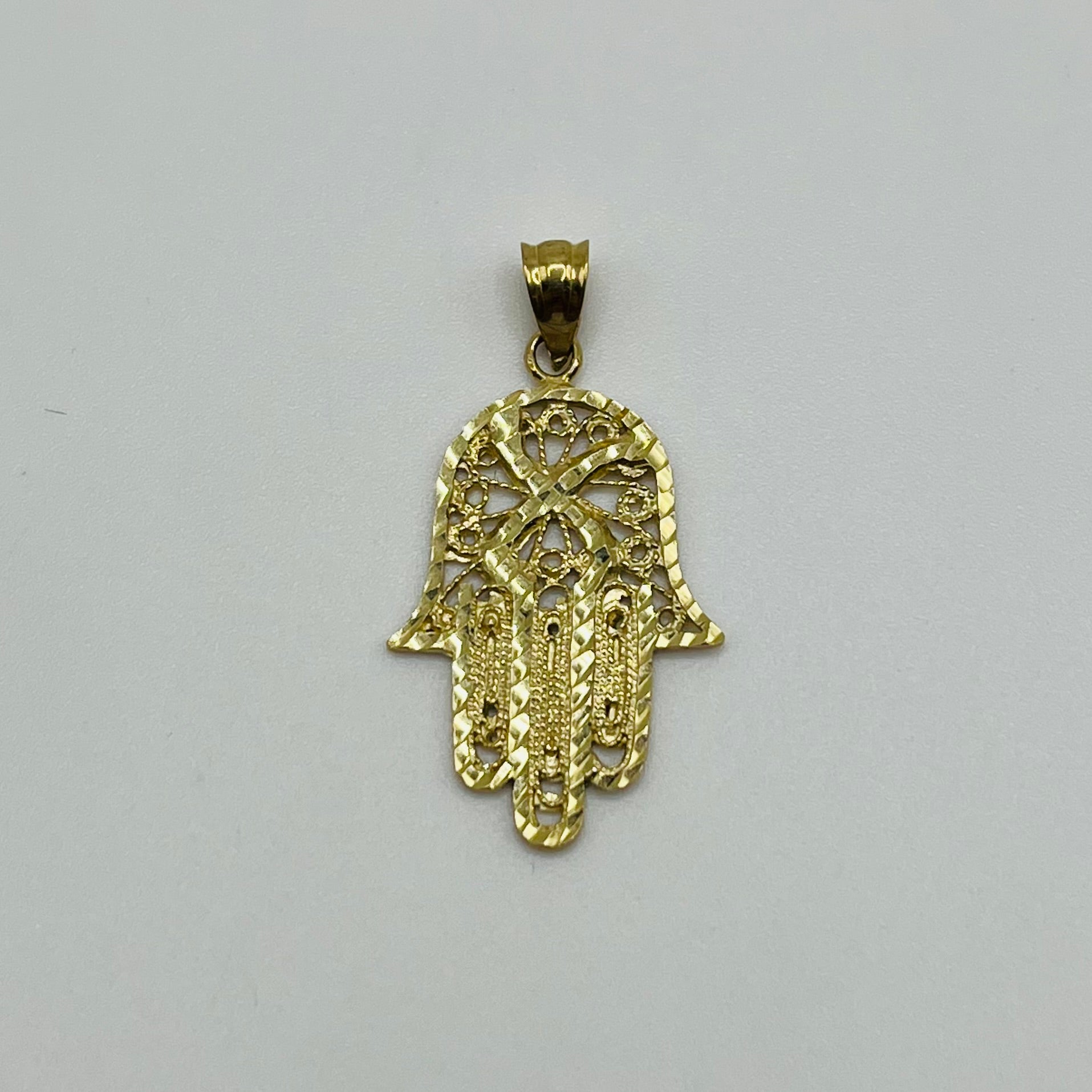 This 10k gold Hamsa pendant features elegant swirling designs that add a touch of sophistication and spiritual charm. Crafted with care, it offers a meaningful symbol of protection while enhancing your style with its intricate details. Perfect for everyday wear or special occasions, this pendant combines beauty and symbolism in one timeless piece.