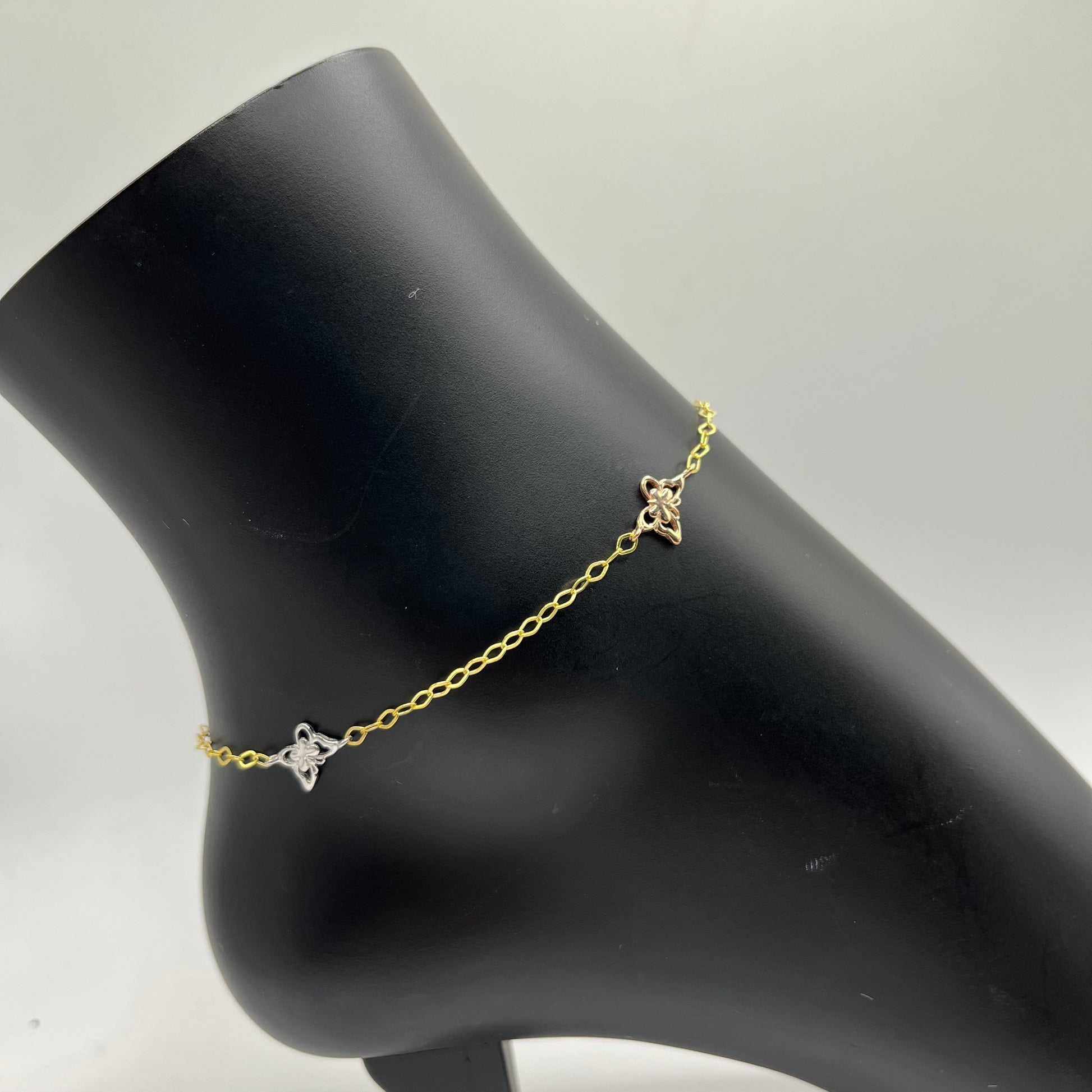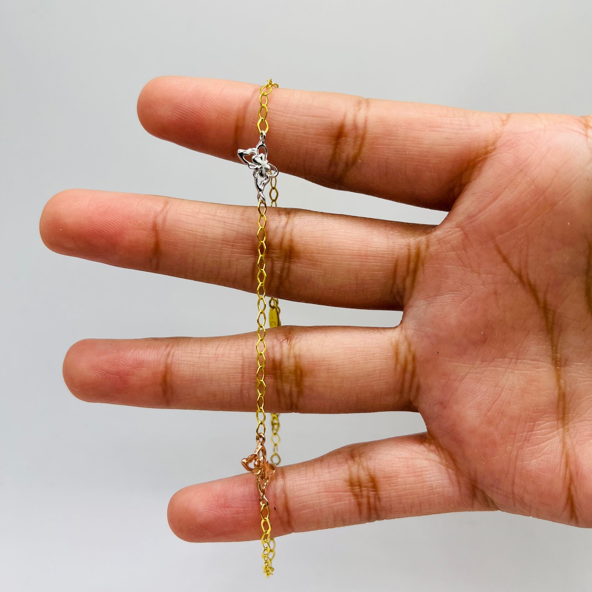 Add a touch of charm and elegance to your step with this beautiful 10K Gold Tri-Color Butterfly Anklet. Crafted in genuine 10K yellow, white, and rose gold, this delicate piece features a series of dainty butterfly charms, symbolizing transformation, freedom, and beauty.