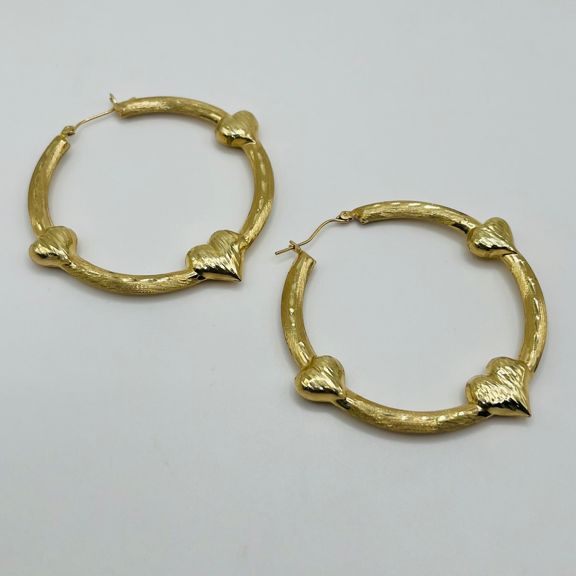 10K Gold Triple Heart Hoop earrings ( 2")