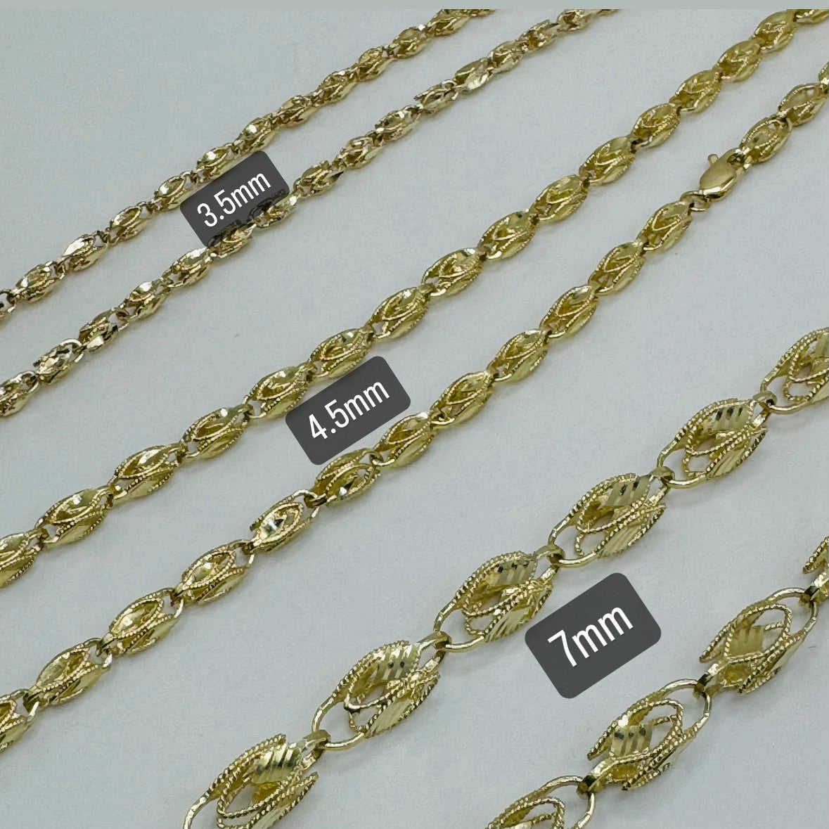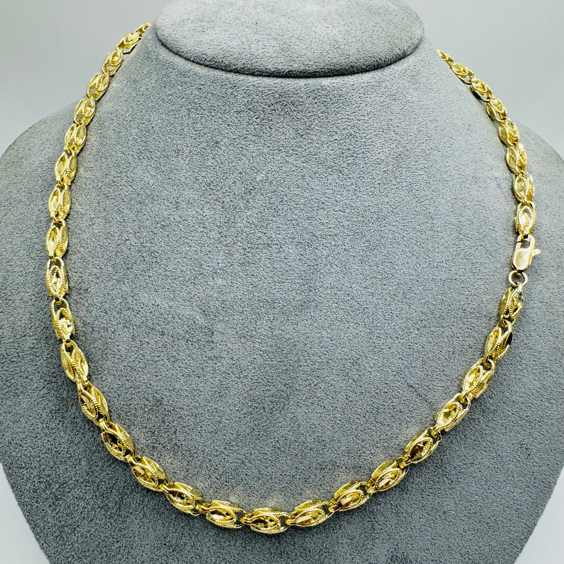 Step up your style game with this 10K Solid Gold 4.5mm Turkish Link chain, crafted for those who appreciate quality and finesse. The intricate design of the Turkish links adds a touch of urban sophistication, making it the perfect accessory to elevate any outfit. Whether you're dressing up for a special occasion or adding a bit of flair to your everyday look, this chain is your go-to for a bold yet refined statement.