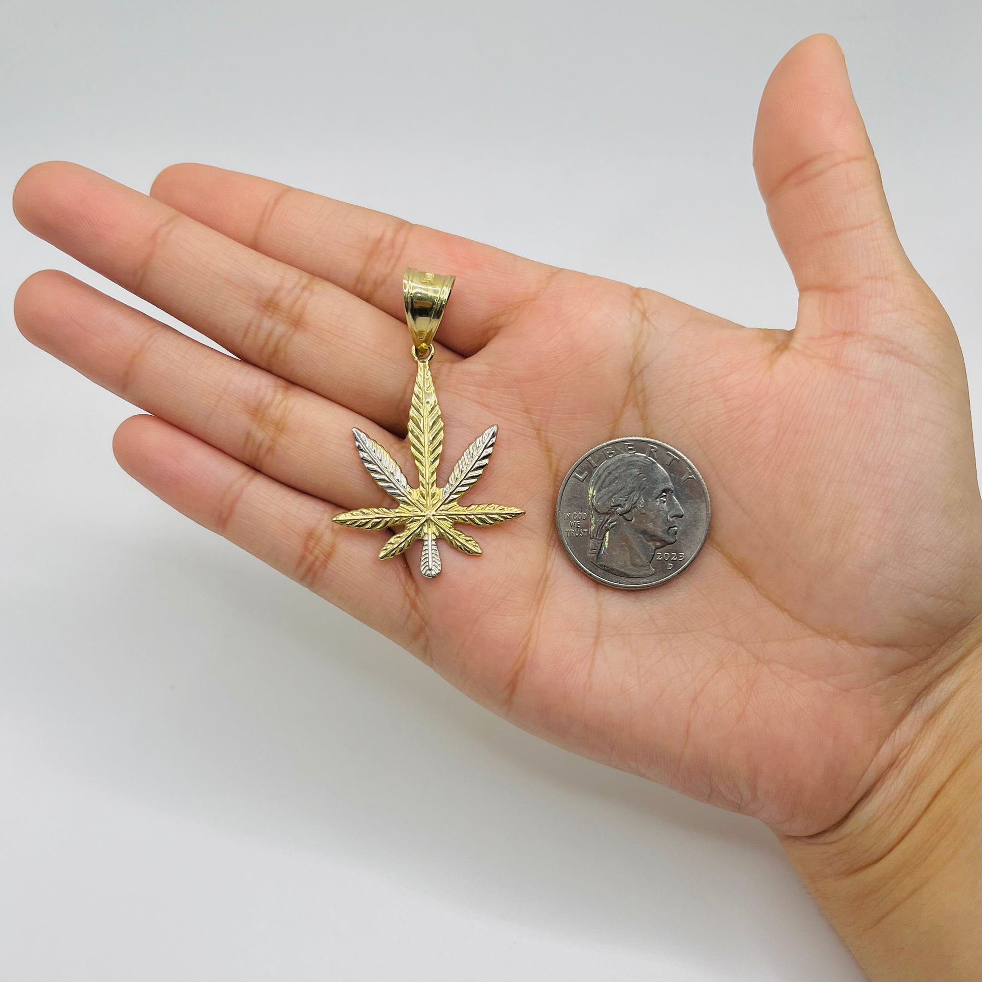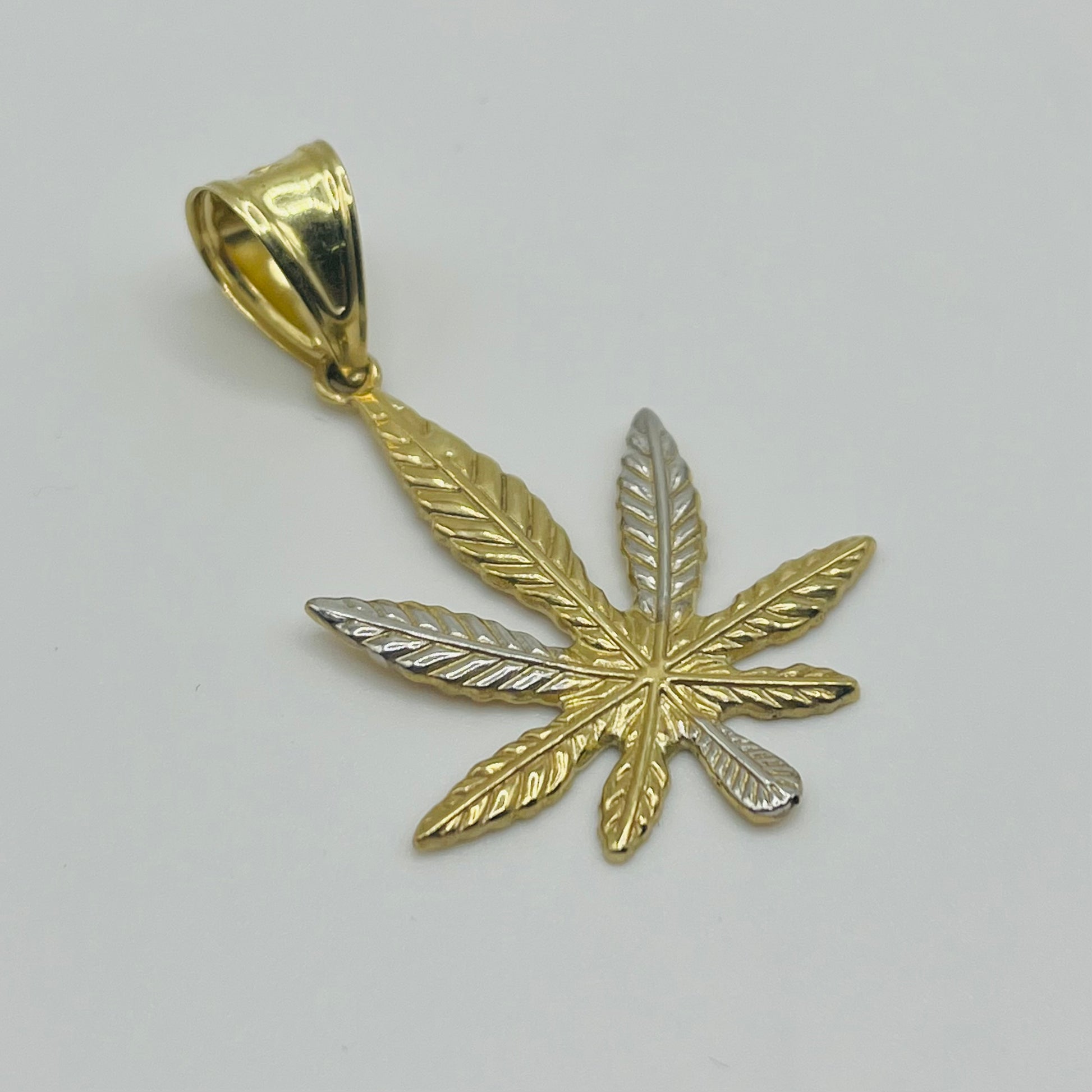 Make a bold statement with this eye-catching Two-Tone Weed Pendant, designed for those who embrace both style and individuality. Featuring a detailed cannabis leaf design, this pendant blends white gold and yellow gold for a sleek, urban-inspired look.