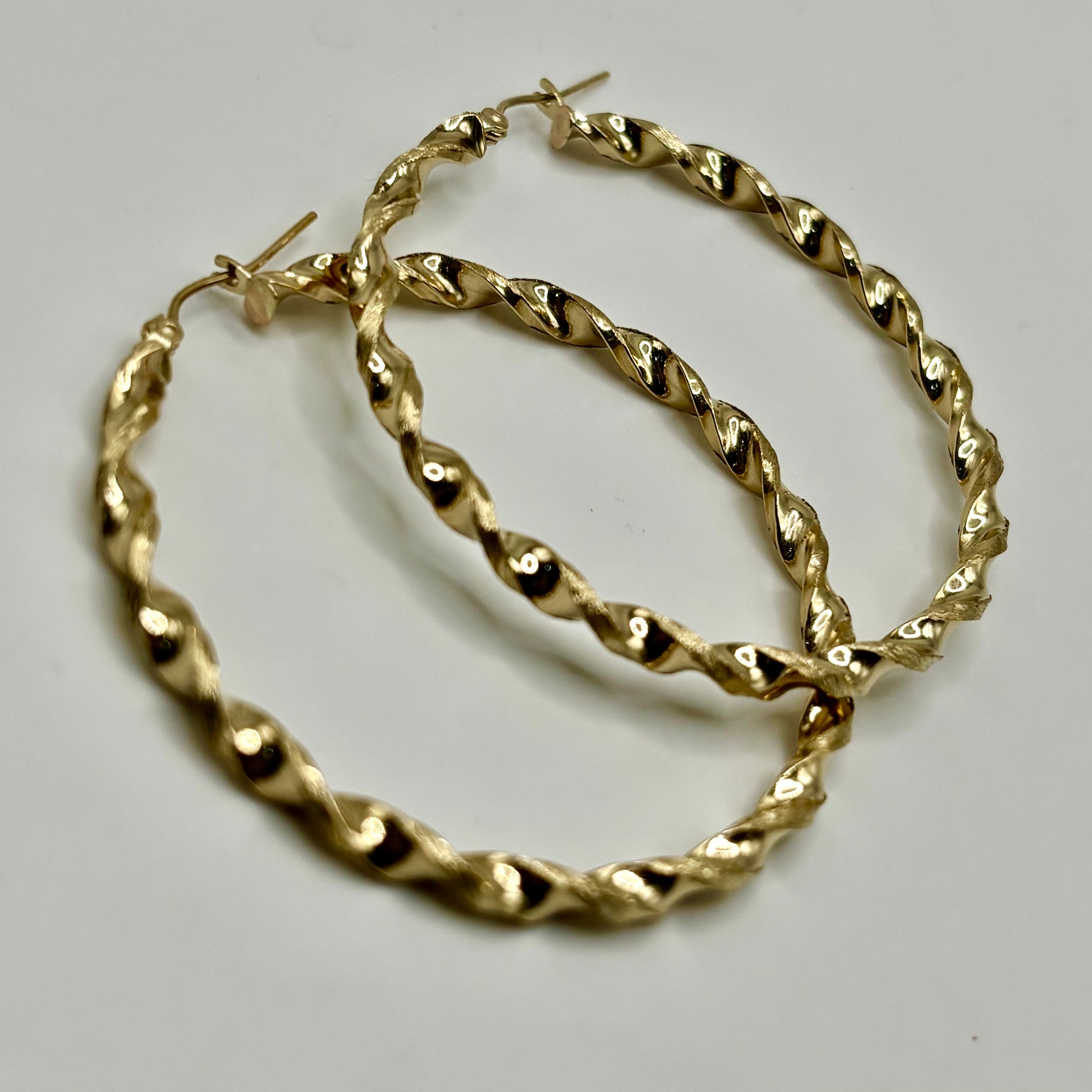 10K Gold Thin Twist Hoops (2" diameter)