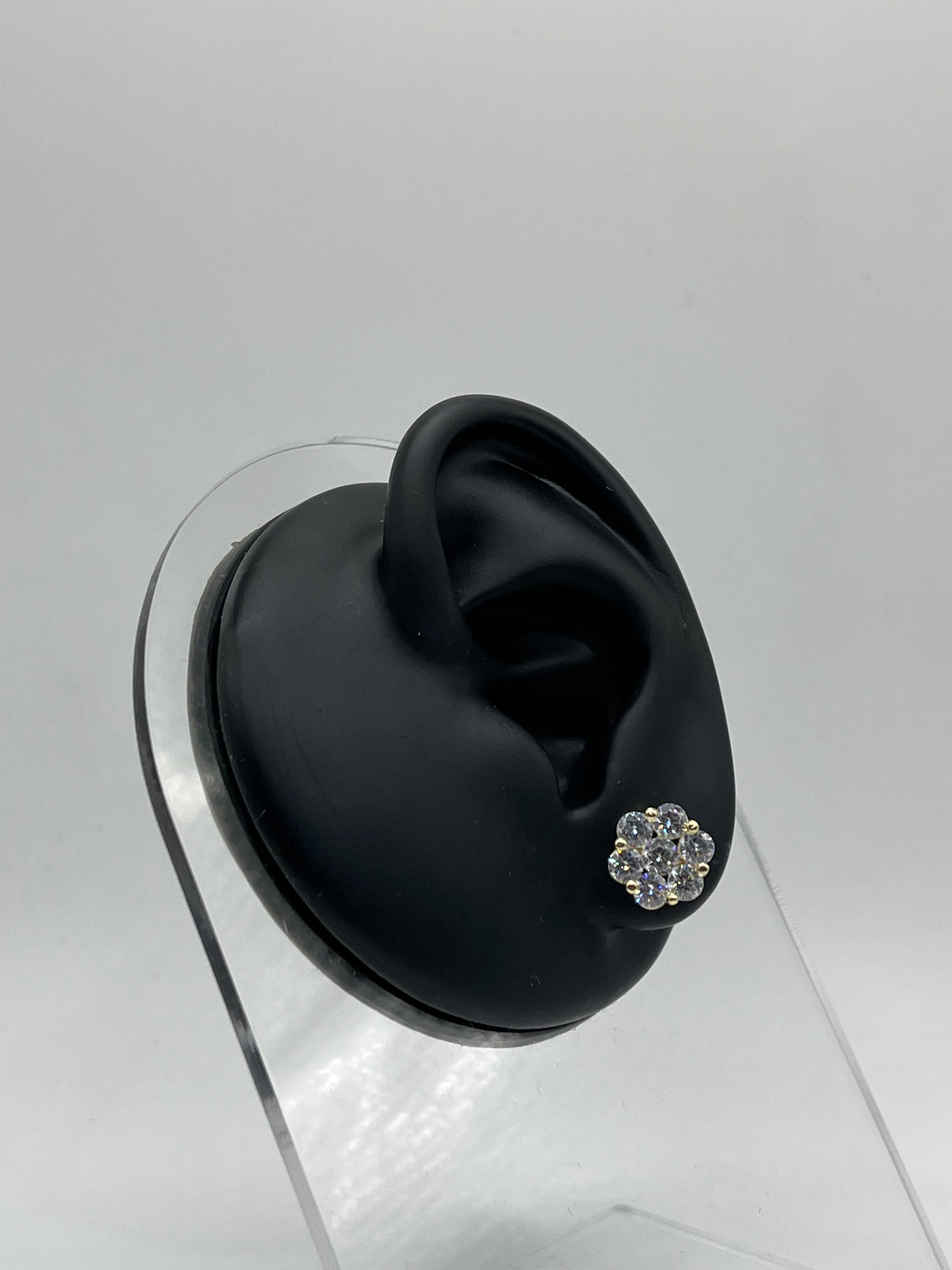 These 10K Gold White Flower CZ studs are 10mm round, lightweight and comfortable to wear, making them perfect for everyday wear or special occasions.