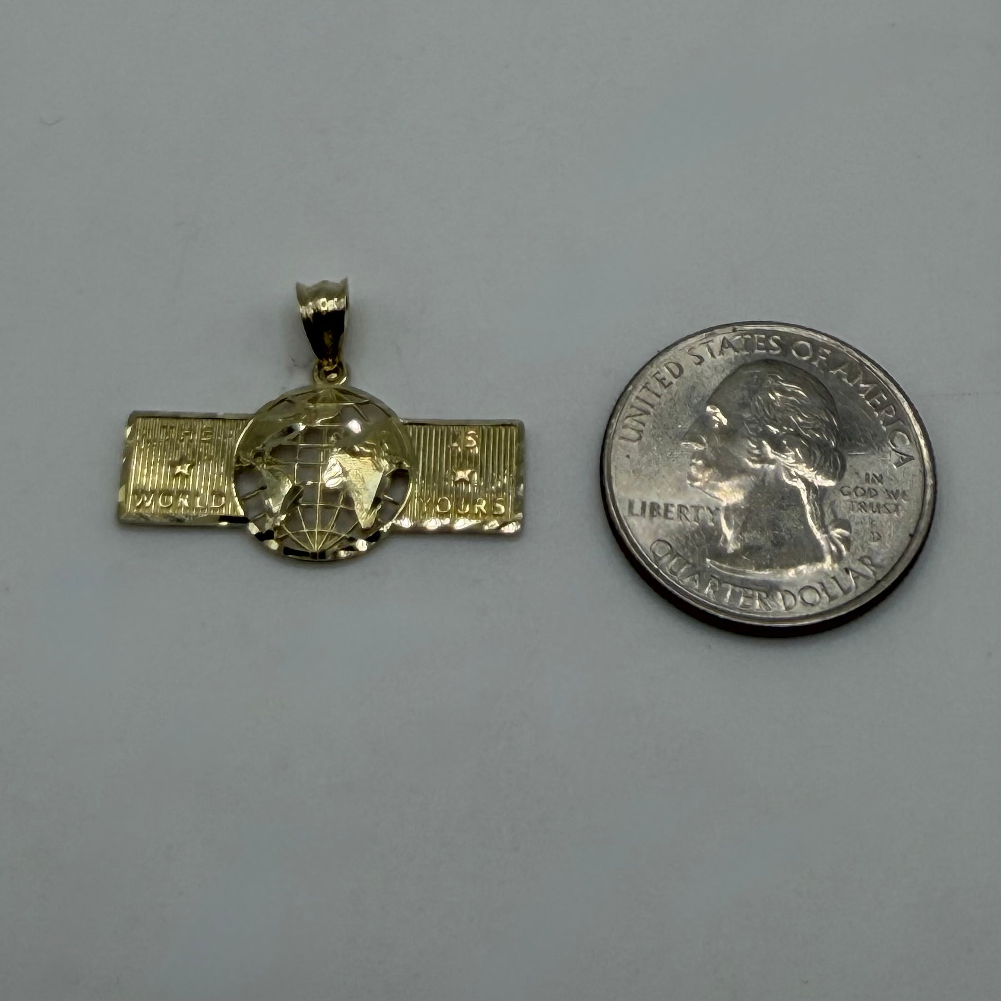 Embrace limitless possibility with this exquisite 10k gold charm. Delicately crafted with "world" as its centerpiece, this piece symbolizes ambition and boundless potential. Perfect for charm bracelet collectors who celebrate life's greatest adventures, it serves as a daily reminder that opportunity awaits. The warm glow of genuine 10k gold adds timeless elegance to any collection, making it an ideal gift for those who dare to dream big and seize every moment.