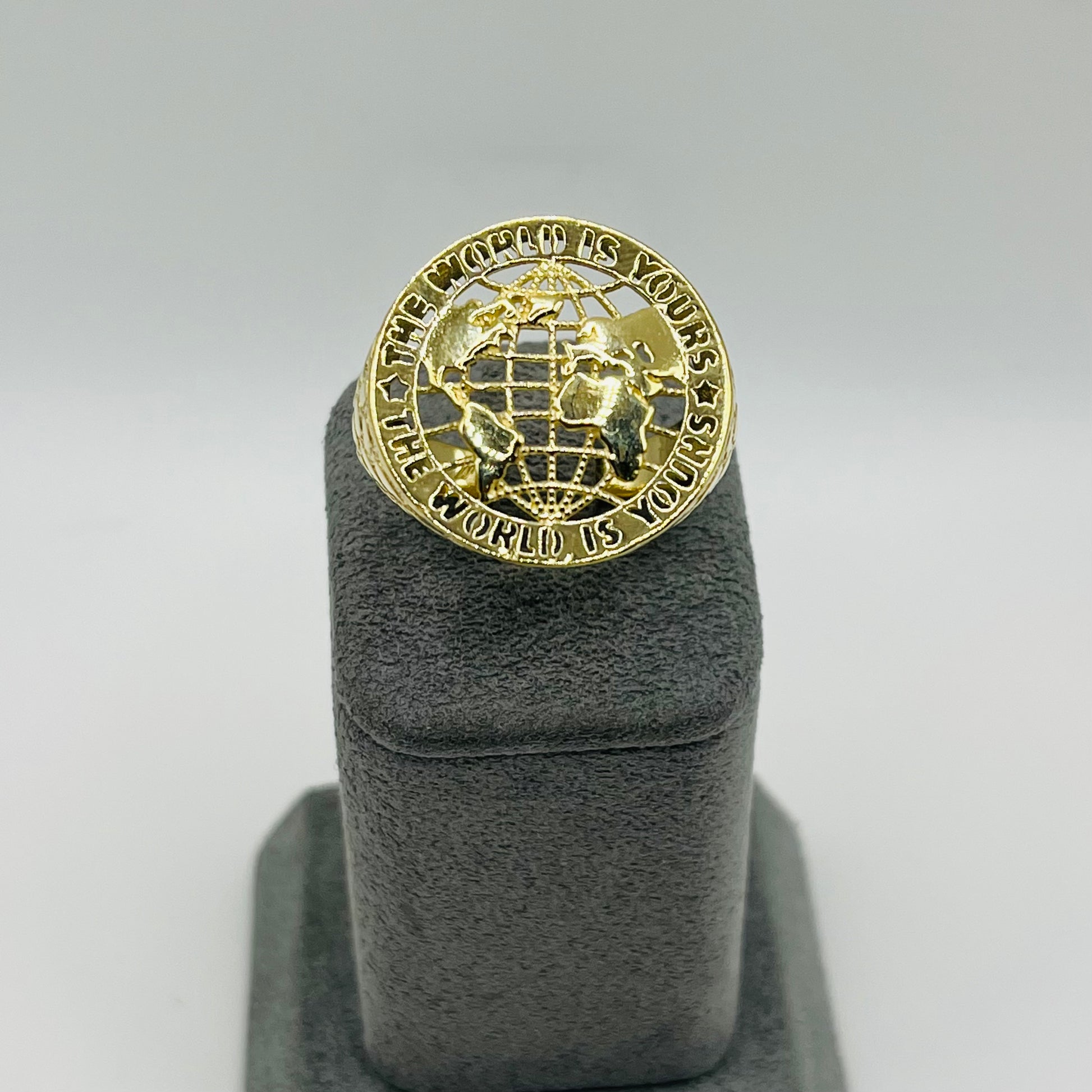 Let your jewelry speak volumes. The World Talk Nugget Ring is a bold declaration of ambition and presence. Crafted from solid 10K yellow gold, this statement piece features a finely detailed globe emblem—symbolizing power, ownership, and global vision—set atop a rugged nugget-textured band that reflects timeless street luxury.