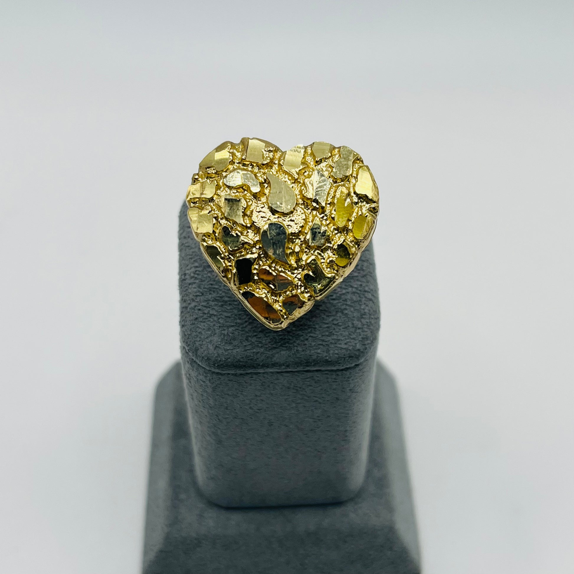 This 10k Gold XL Heart Nugget Ring offers a bold blend of classic charm and modern style. Crafted in warm 10k gold, its oversized heart-shaped nugget design makes a striking statement on any hand. Perfect for expressing love or adding a unique touch to your accessory collection, this ring delivers lasting shine and eye-catching detail with every wear. Elevate your look with a piece that’s both meaningful and memorable.