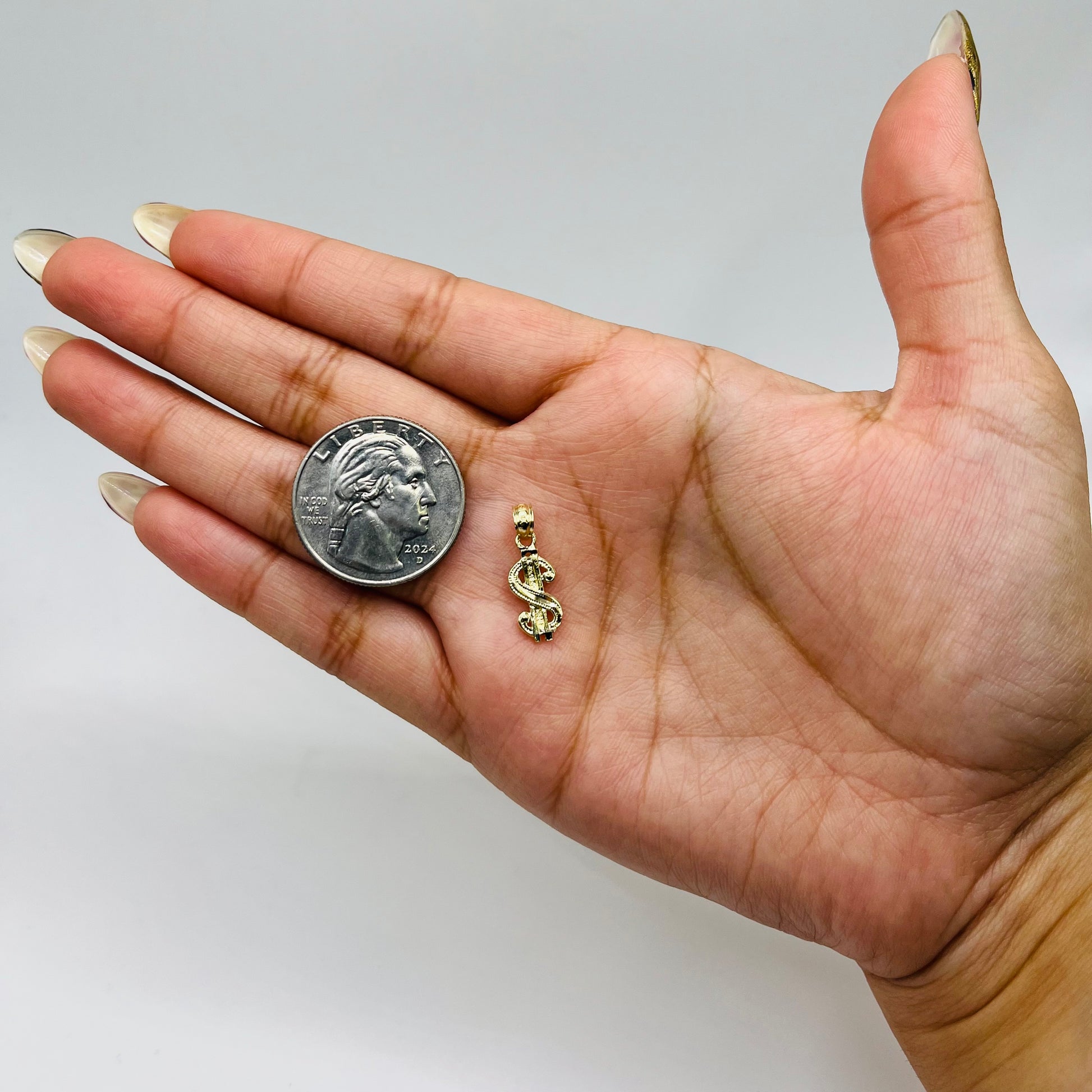Show off your love for success and ambition with this sleek 10K Gold XS Money Sign Charm. Crafted from real 10 karat yellow gold, this extra-small charm delivers a bold message with a minimalist design.