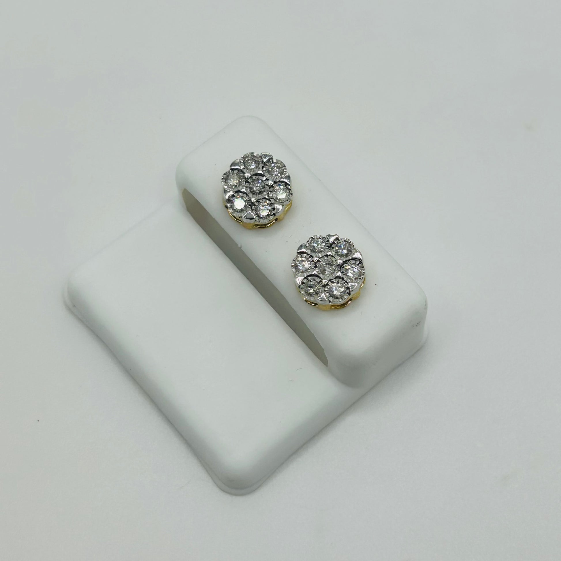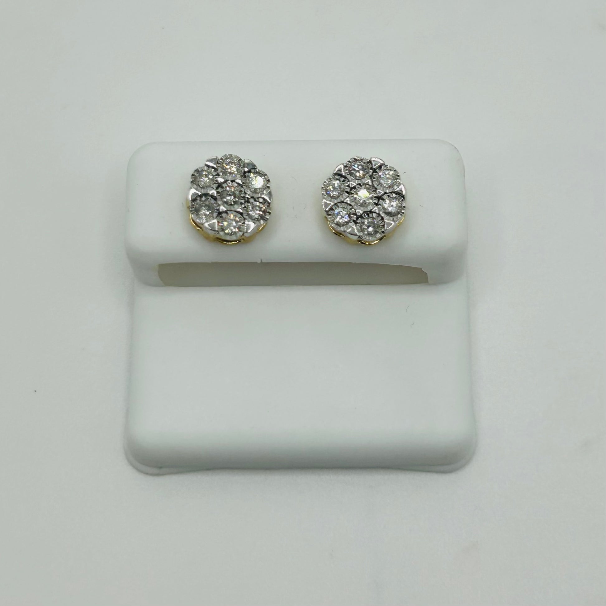 These charming 10K yellow gold diamond flower set earrings feature 0.35ctw of SI1/VS2 quality diamonds with GH color, intricately illusion-set to create a dazzling floral design. These studs are approximately 7.5mm across Perfect for elevating your style with a touch of timeless elegance.