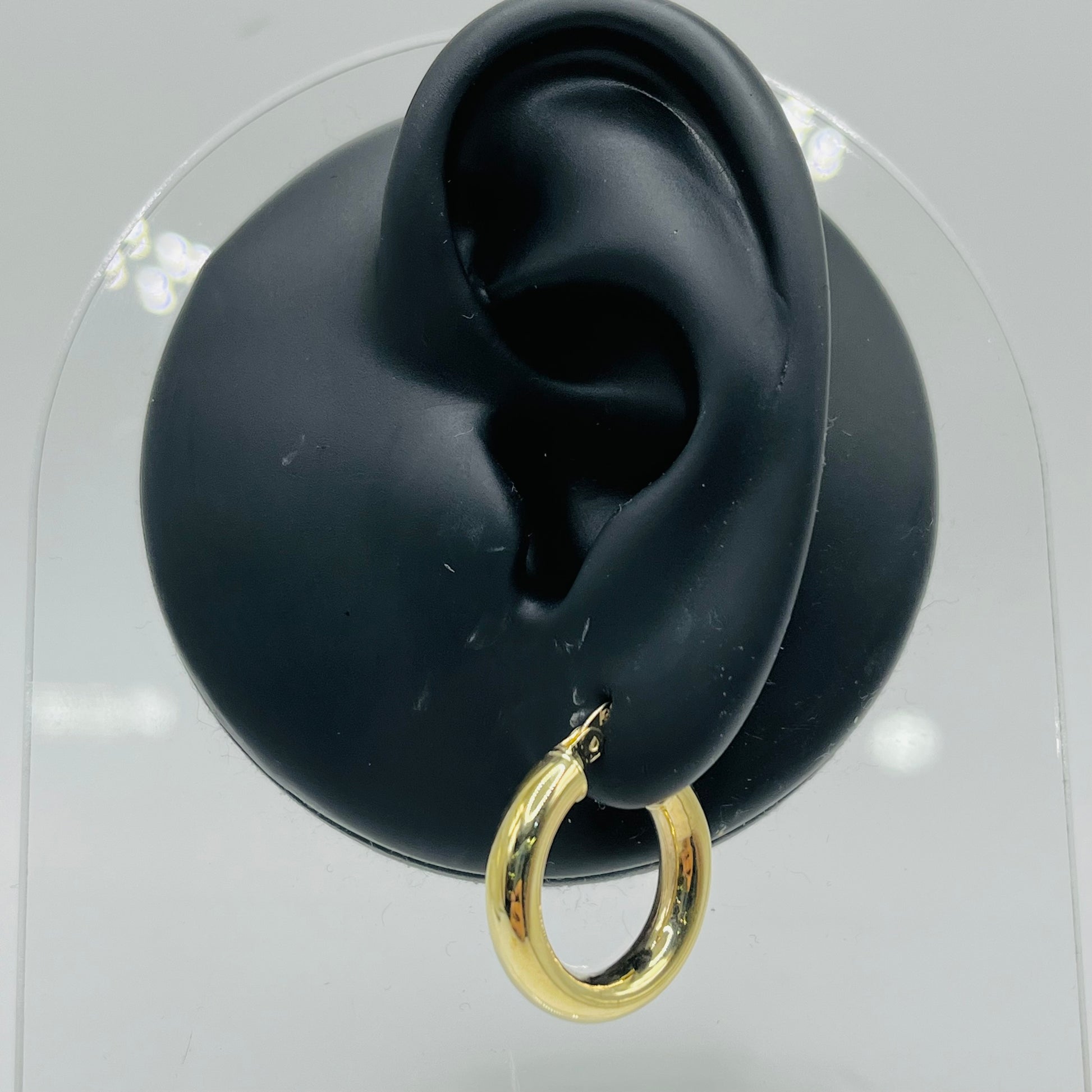 These elegant gold mini hoop earrings are the perfect accessory for adding a subtle touch of sophistication to any outfit. Crafted from high-quality 14K gold, they feature a sleek, polished finish that catches the light beautifully. The hoops are 4mm thick and 20mm in diameter making them the perfect size for daily wear.