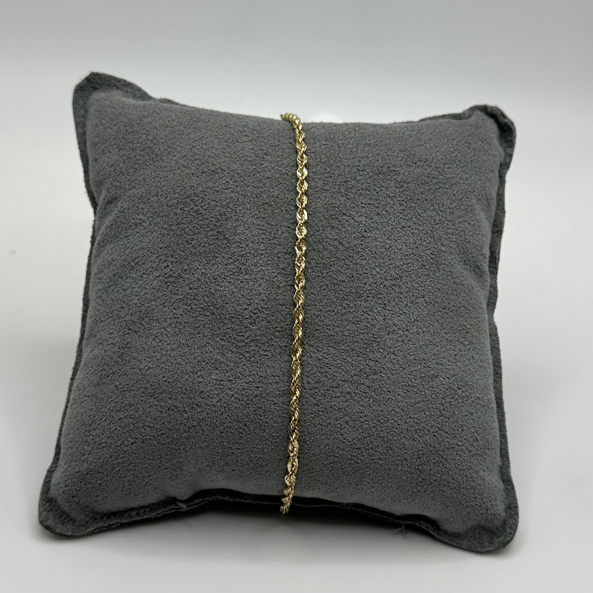 The 14k gold 2mm rope bracelet combines subtle elegance with durable design, perfect for adding a refined touch to any look. Its intricate rope pattern catches the light beautifully, enhancing your style with understated sophistication. Lightweight and versatile, this bracelet effortlessly complements both casual and formal outfits.