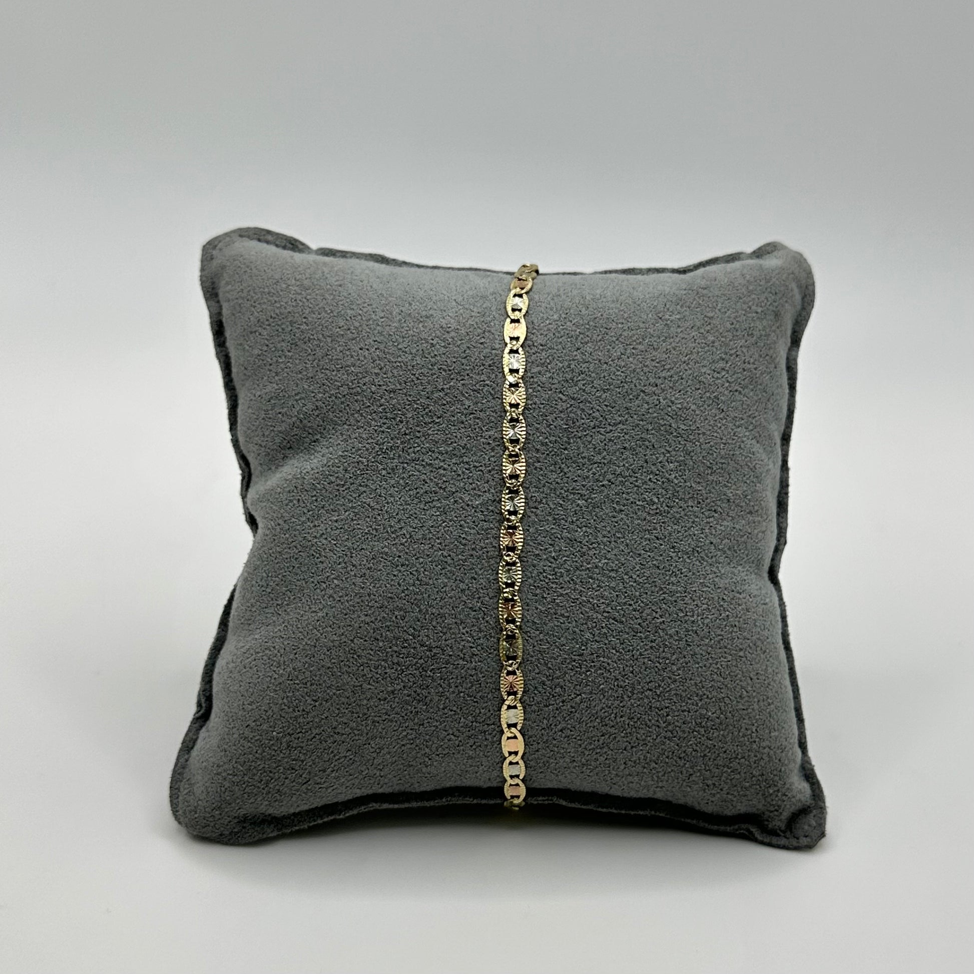 This elegant 14k gold Valentino bracelet, crafted with a sleek 3mm width, offers a timeless and refined look that complements any outfit. Its delicate design provides subtle sophistication, making it perfect for daily wear or special occasions. Durable yet lightweight, this bracelet adds a touch of luxury without overwhelming your style. Elevate your jewelry collection with this versatile piece that embodies both quality and elegance.