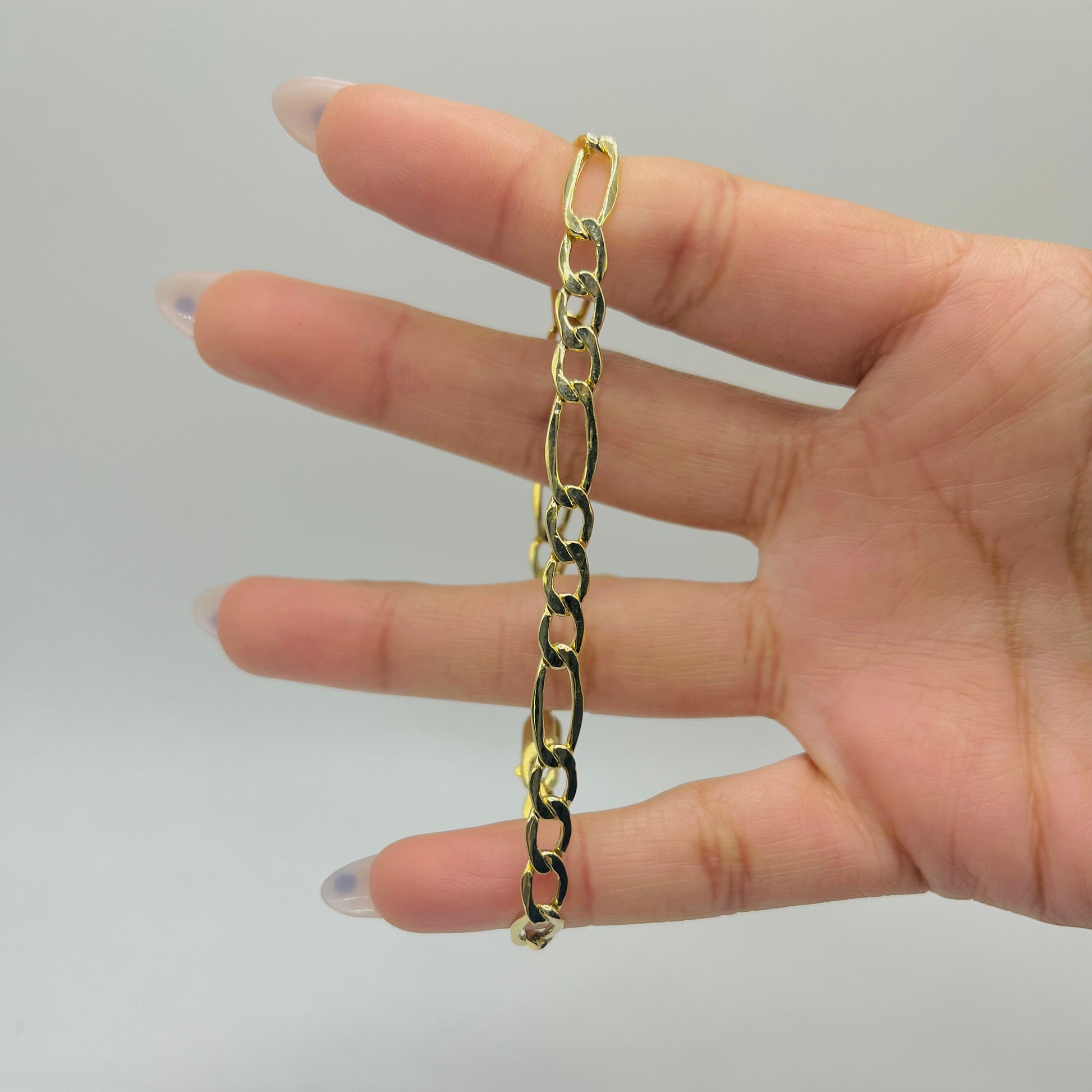 14K Gold 5.5mm Hollow Figaro Bracelet