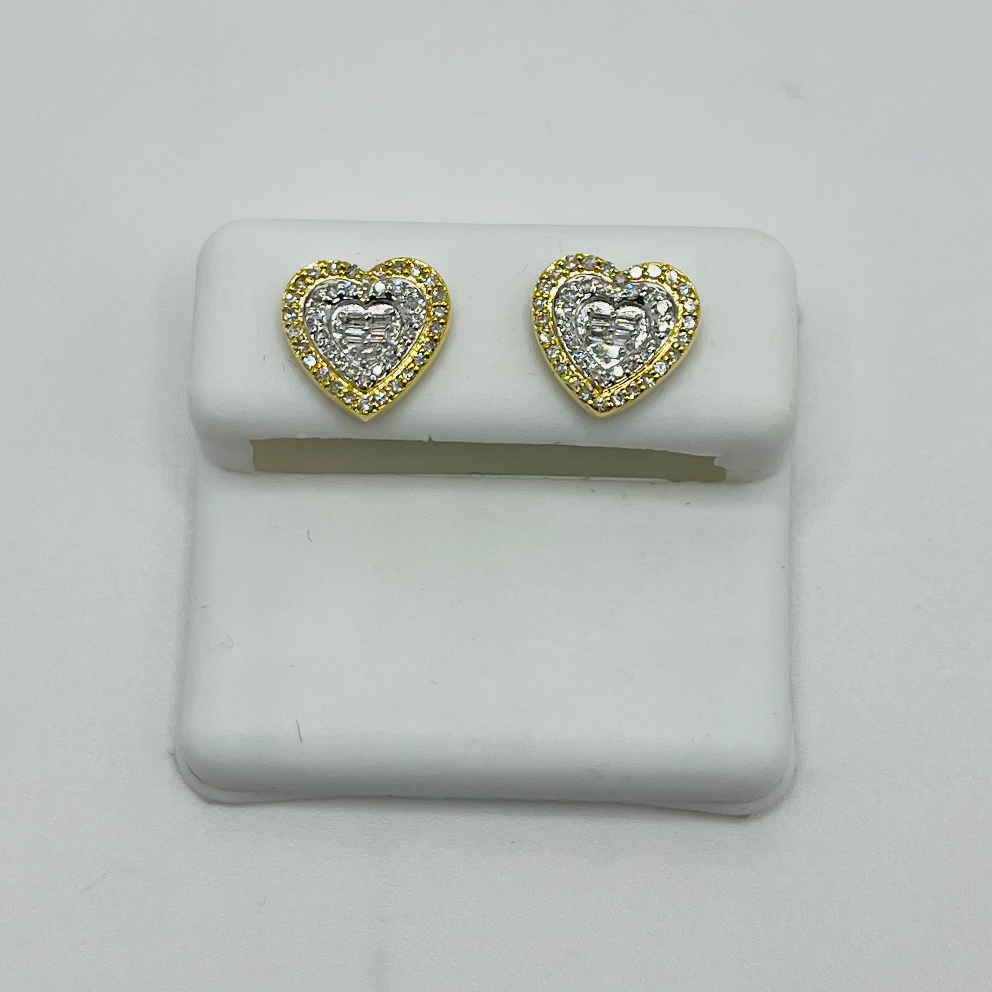 14k Gold Baguette Heart Diamond Earrings 10.5mm (Screwback)