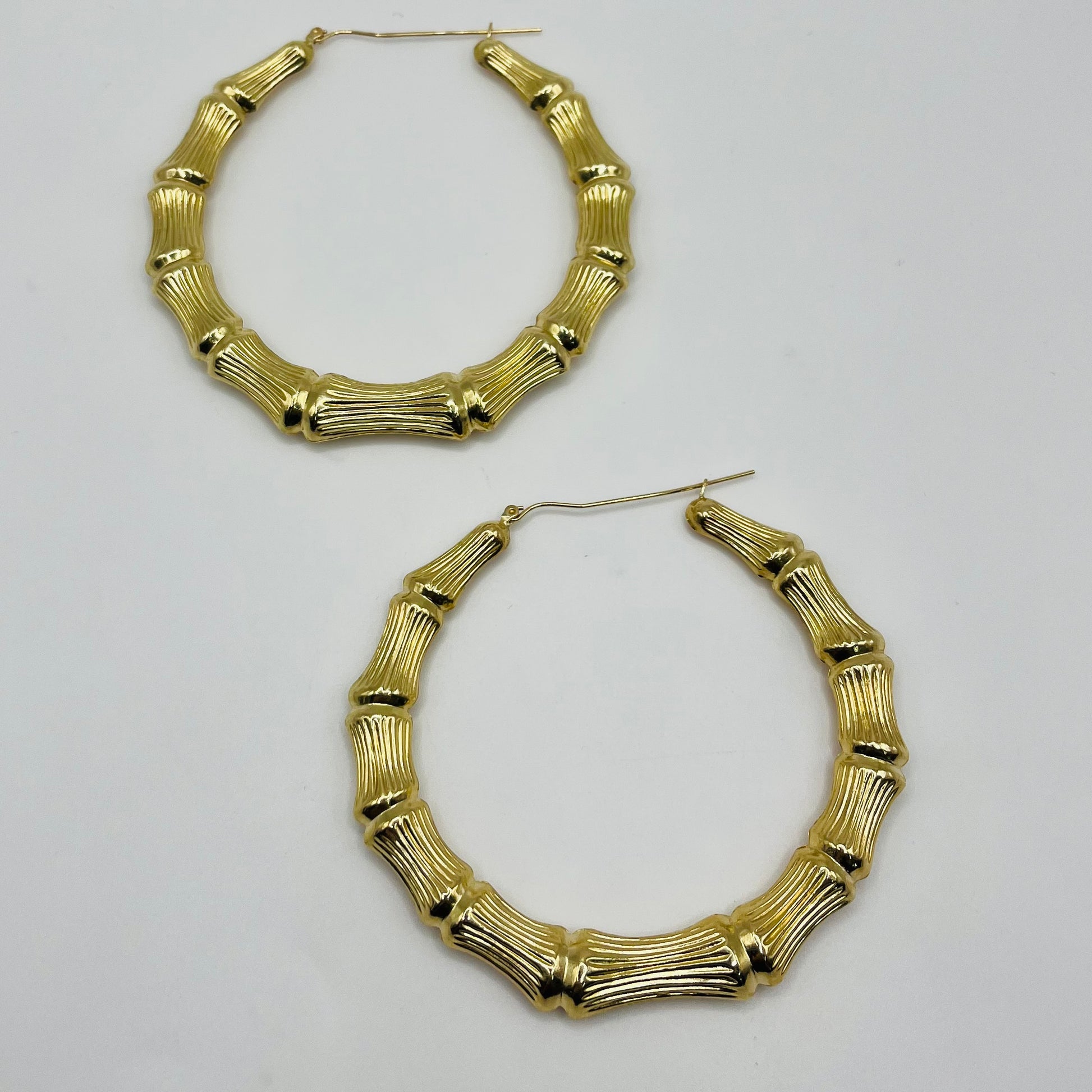 Bring a touch of nature-inspired elegance to your jewelry collection with our 14k Gold Bamboo Hoops. Crafted from genuine 14k gold, these hoops feature a textured bamboo design that adds subtle sophistication and a unique, eye-catching look. Lightweight and comfortable, they are perfect for everyday wear or special occasions, effortlessly elevating any outfit. Their timeless hoop shape ensures they remain a staple piece in your collection for years to come.