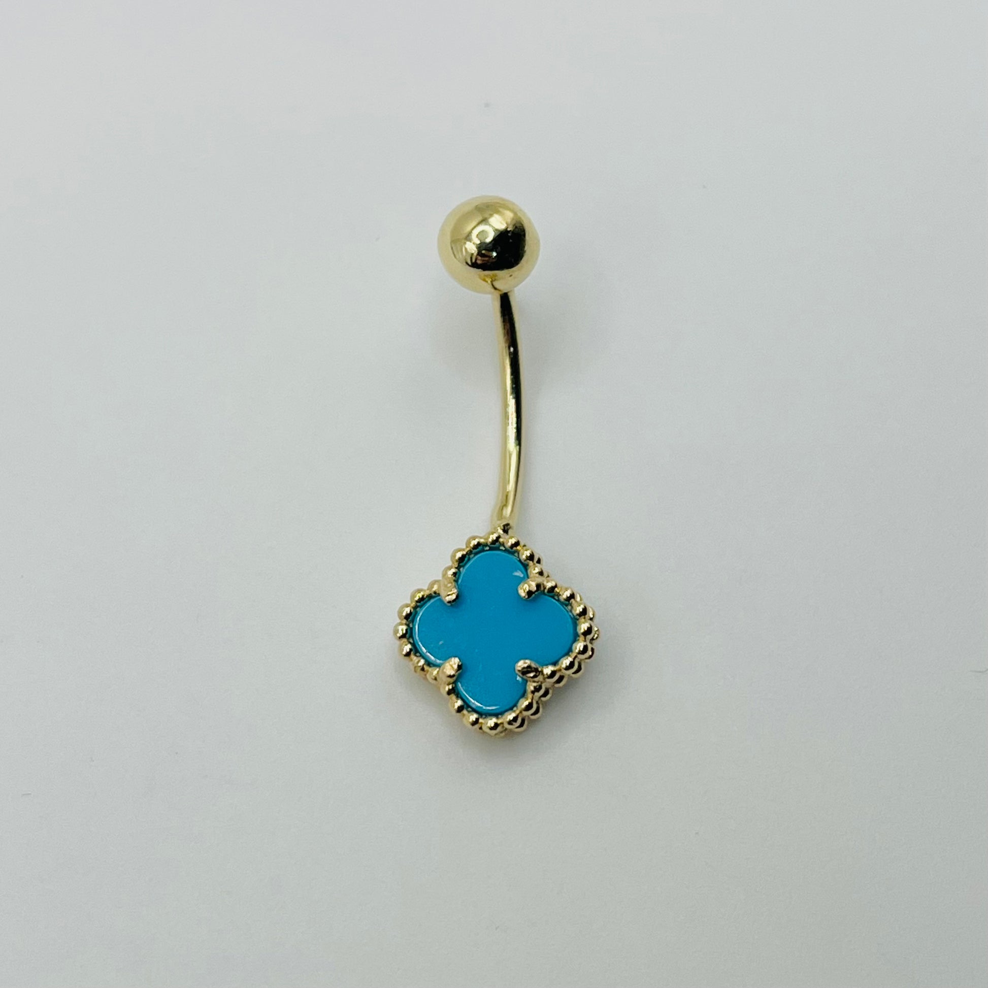 Turn heads and channel good vibes with our stunning Blue Clover Belly Ring. Featuring a bold four-leaf clover charm in a rich, glossy blue enamel, this piece blends lucky symbolism with eye-catching style. Whether you wear it as a good luck charm or simply love the vibrant pop of color, it’s the perfect accessory to brighten up your belly jewelry collection.