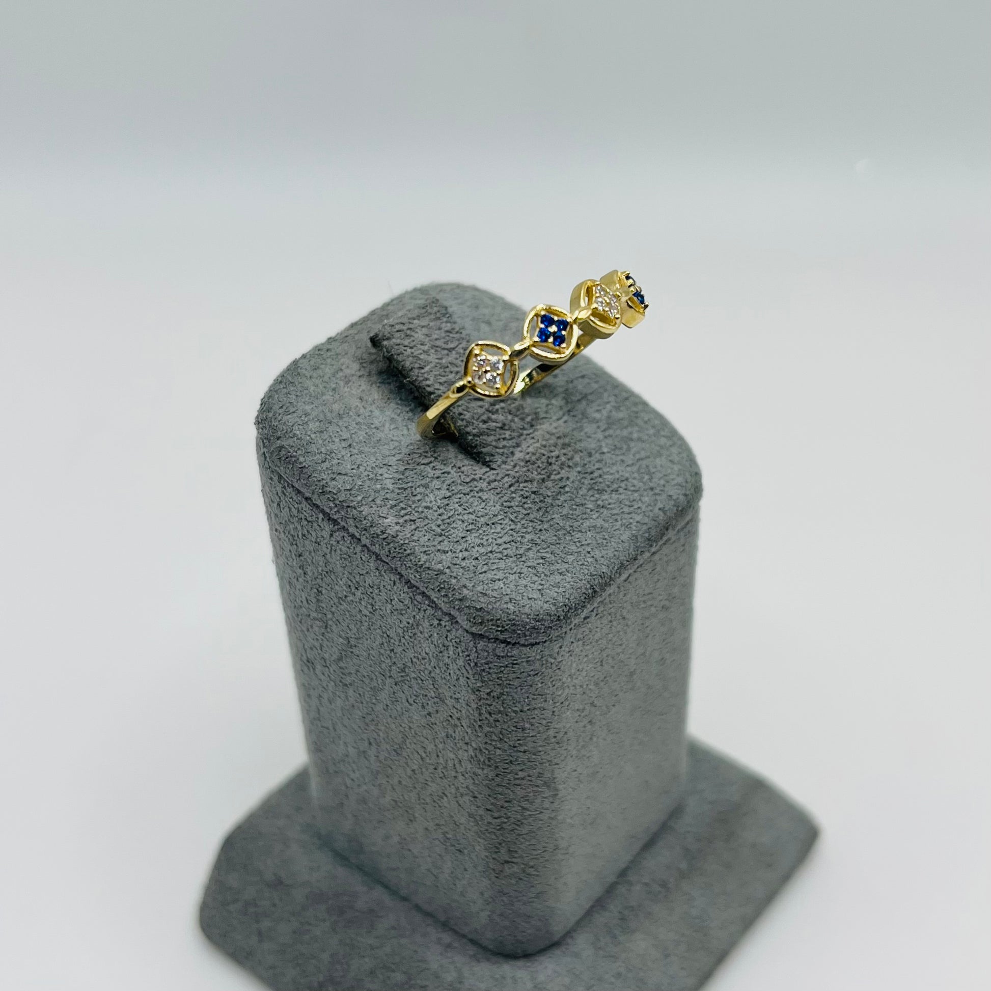 14k Gold Clover Cascade Royal Blue Ring