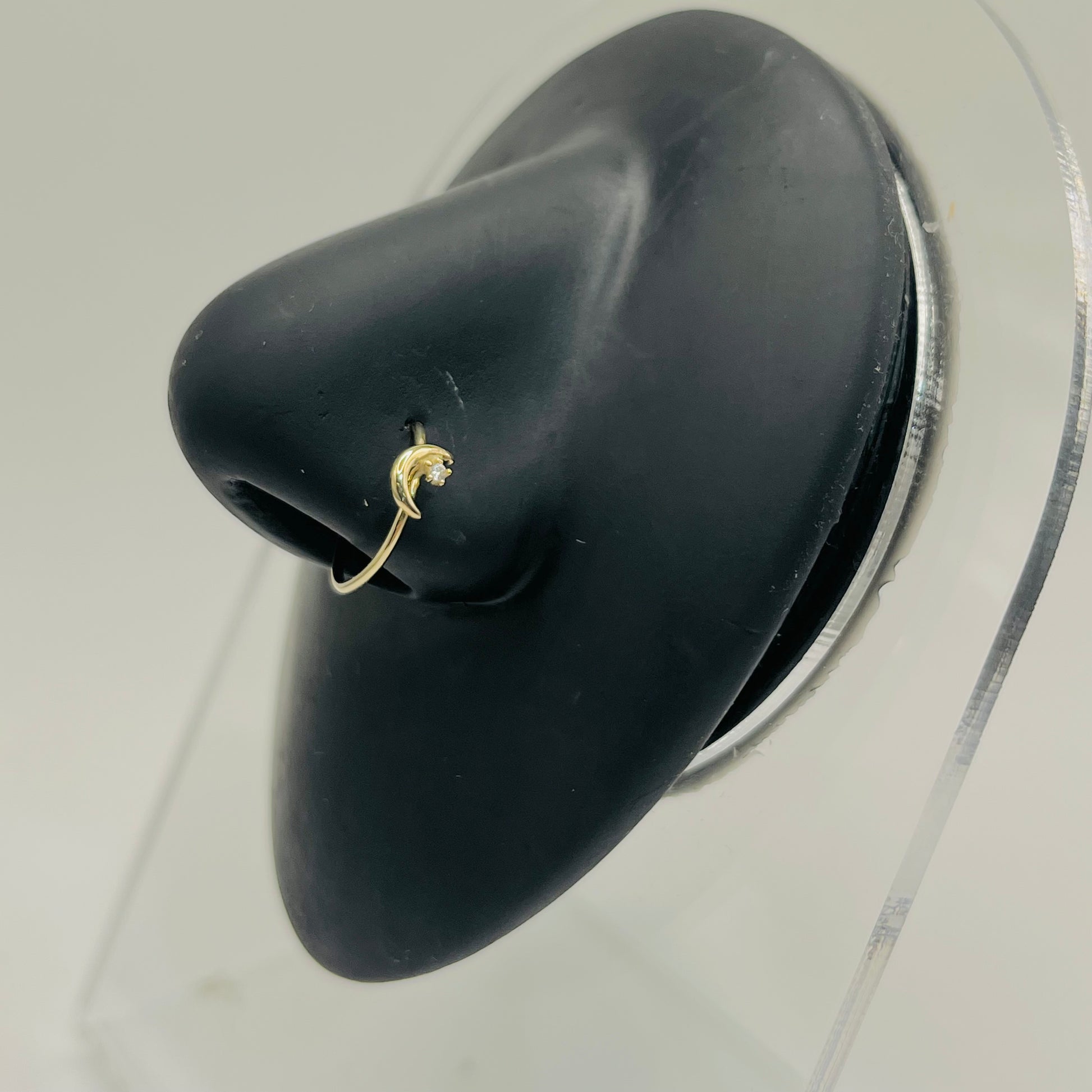 Check out our new line of 14K Solid Gold Nose Ring Hoops. These are real solid 14k gold with a beautiful CZ Moon and Star. Each nose hoops has an open-ended opening for easy entry.