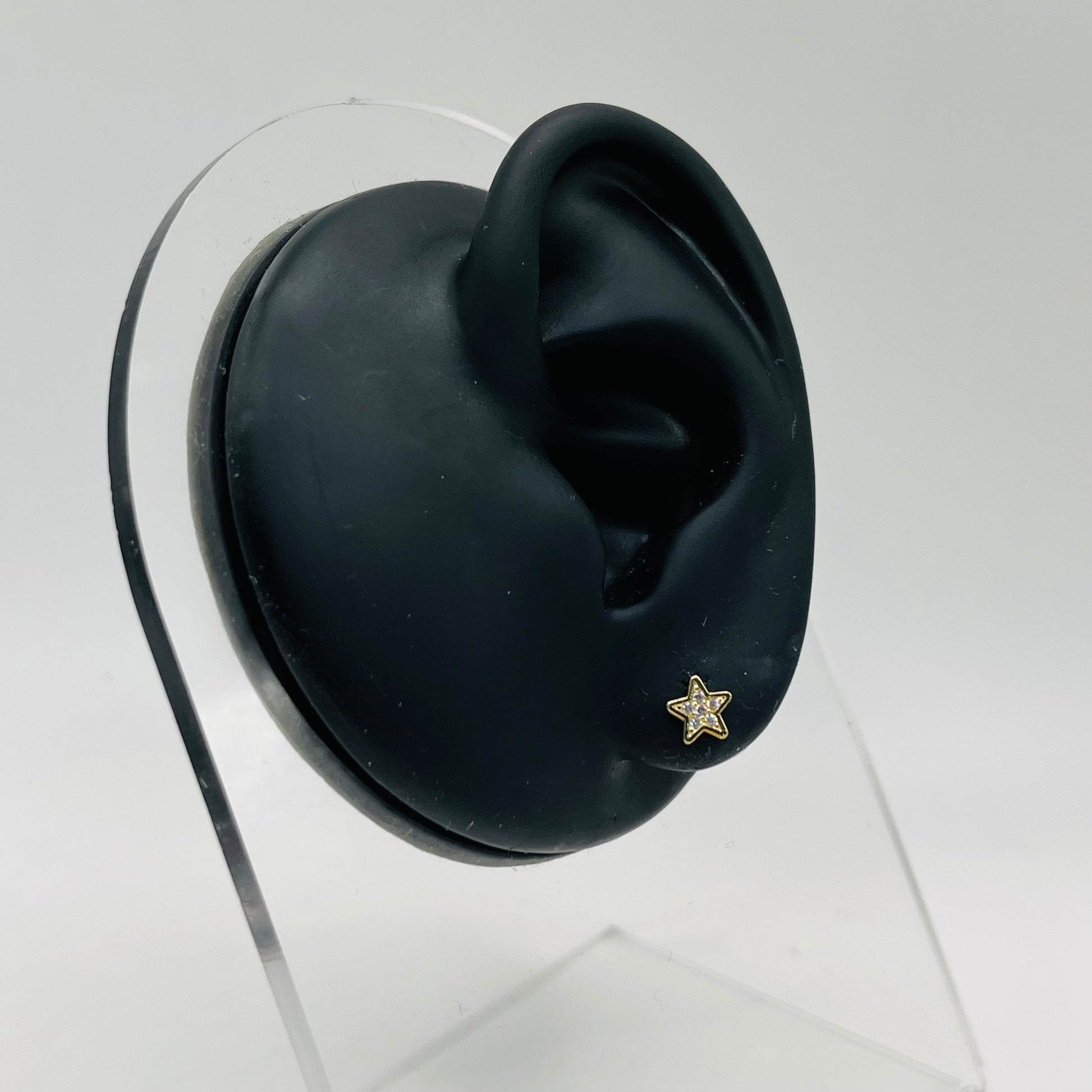 Elevate your style with these 14k Gold CZ Star Earrings featuring secure screwback closures. Their sparkling cubic zirconia stars add a touch of brilliance while the screwbacks ensure a comfortable, worry-free fit all day long. Perfect for any occasion, these earrings bring a subtle yet stunning shine to your look.