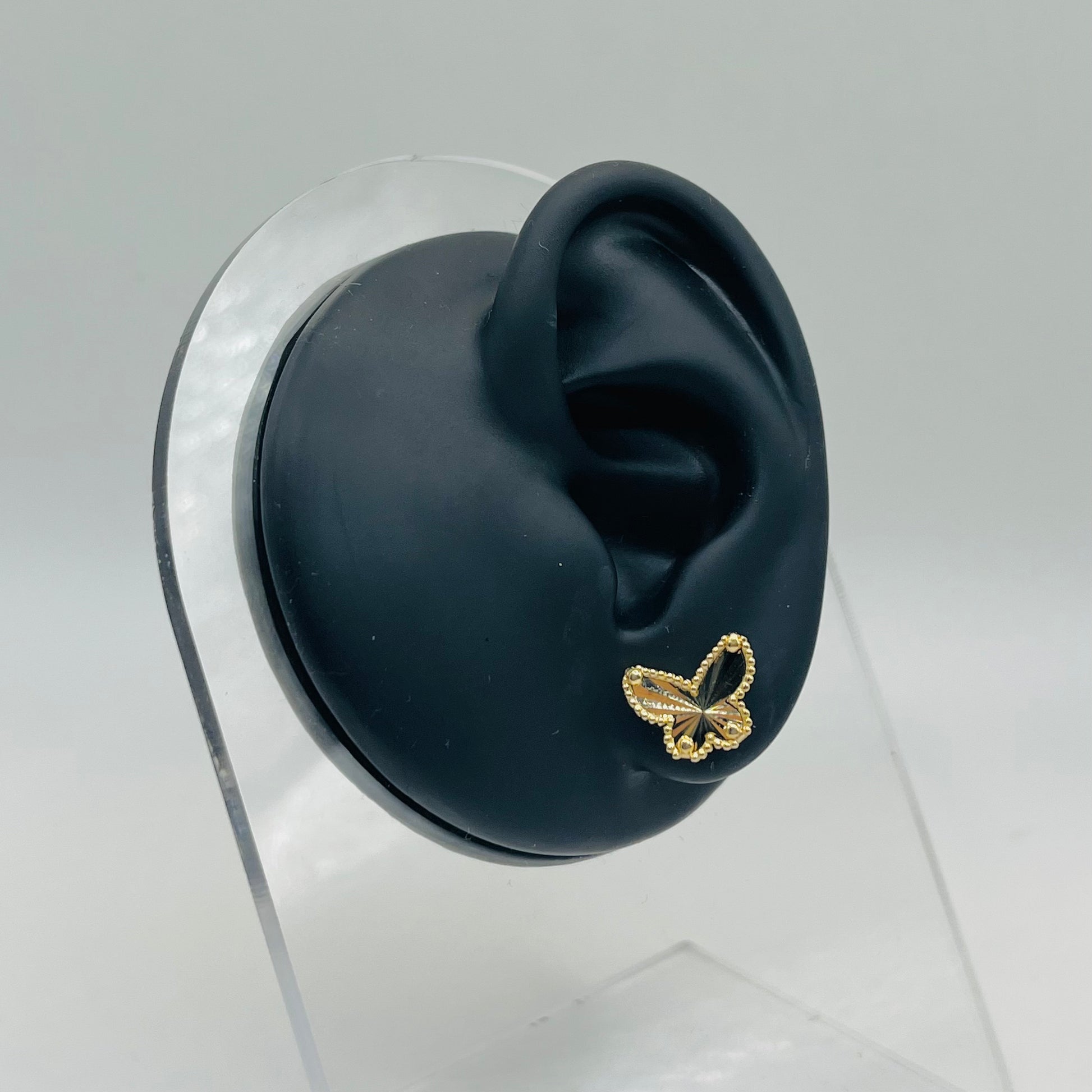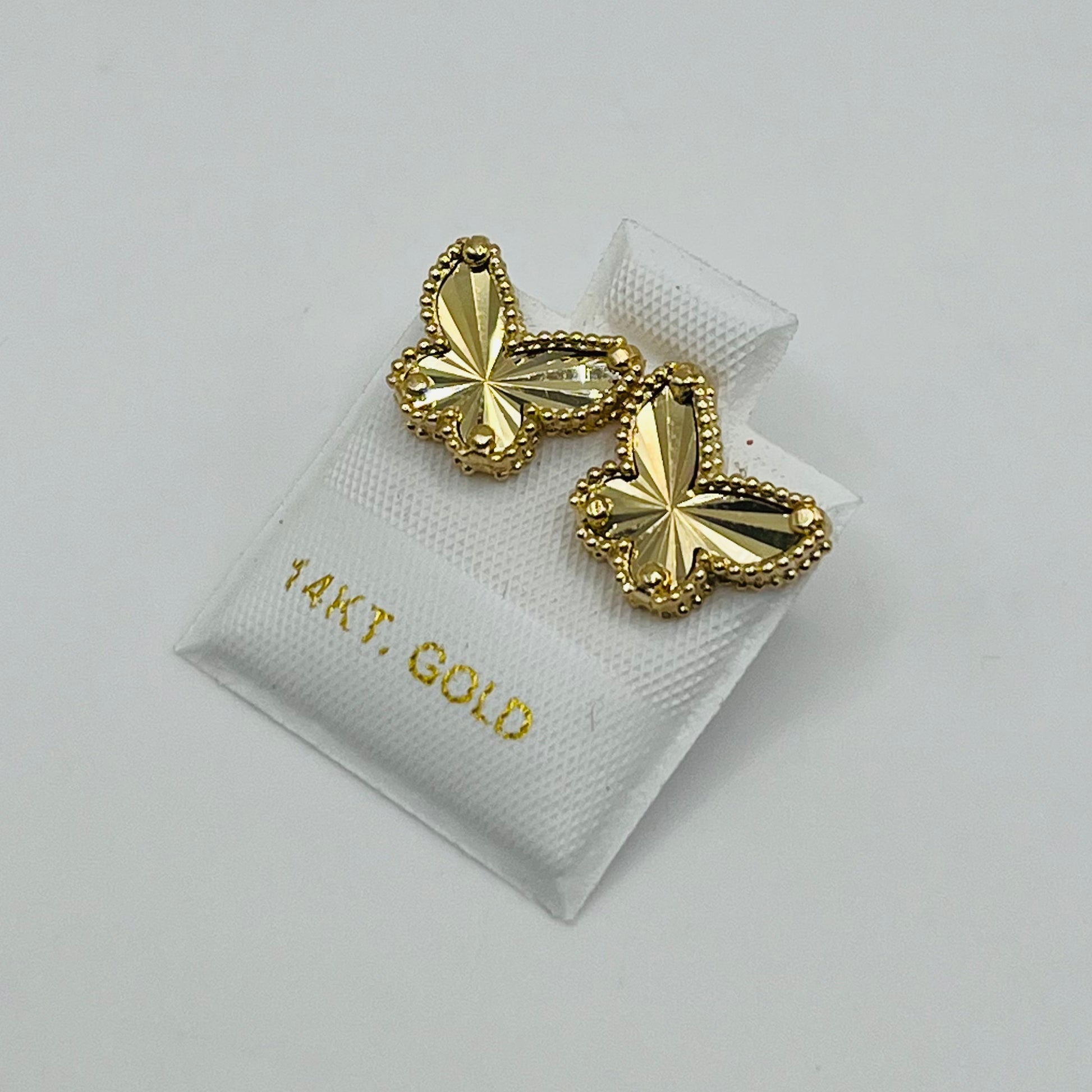 Elevate your style with these 14k Gold Fancy Butterfly Earrings, featuring a delicate mirror cut design that catches the light from every angle. Crafted for a flawless finish, these earrings add a touch of elegance and whimsy to any outfit, making them perfect for daily wear or special occasions. Their lightweight feel ensures comfortable all-day wear while showcasing exquisite craftsmanship. Let these butterflies inspire your unique beauty and charm effortlessly.