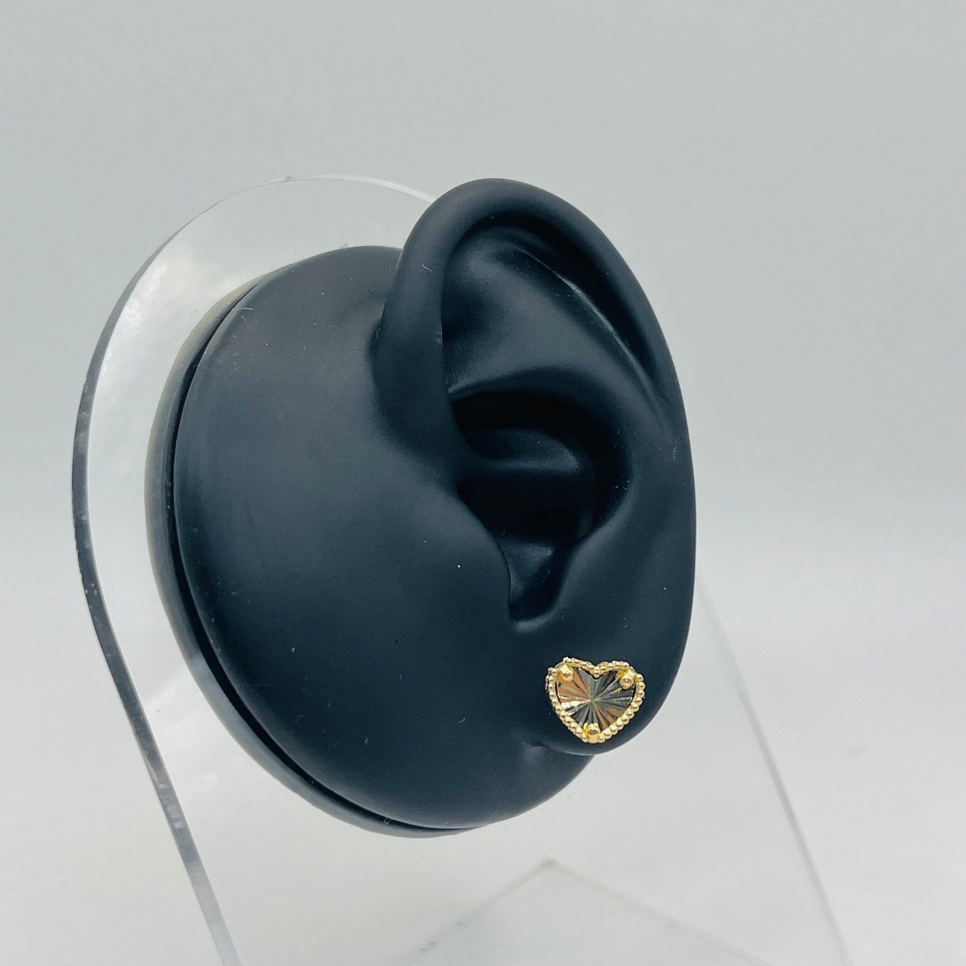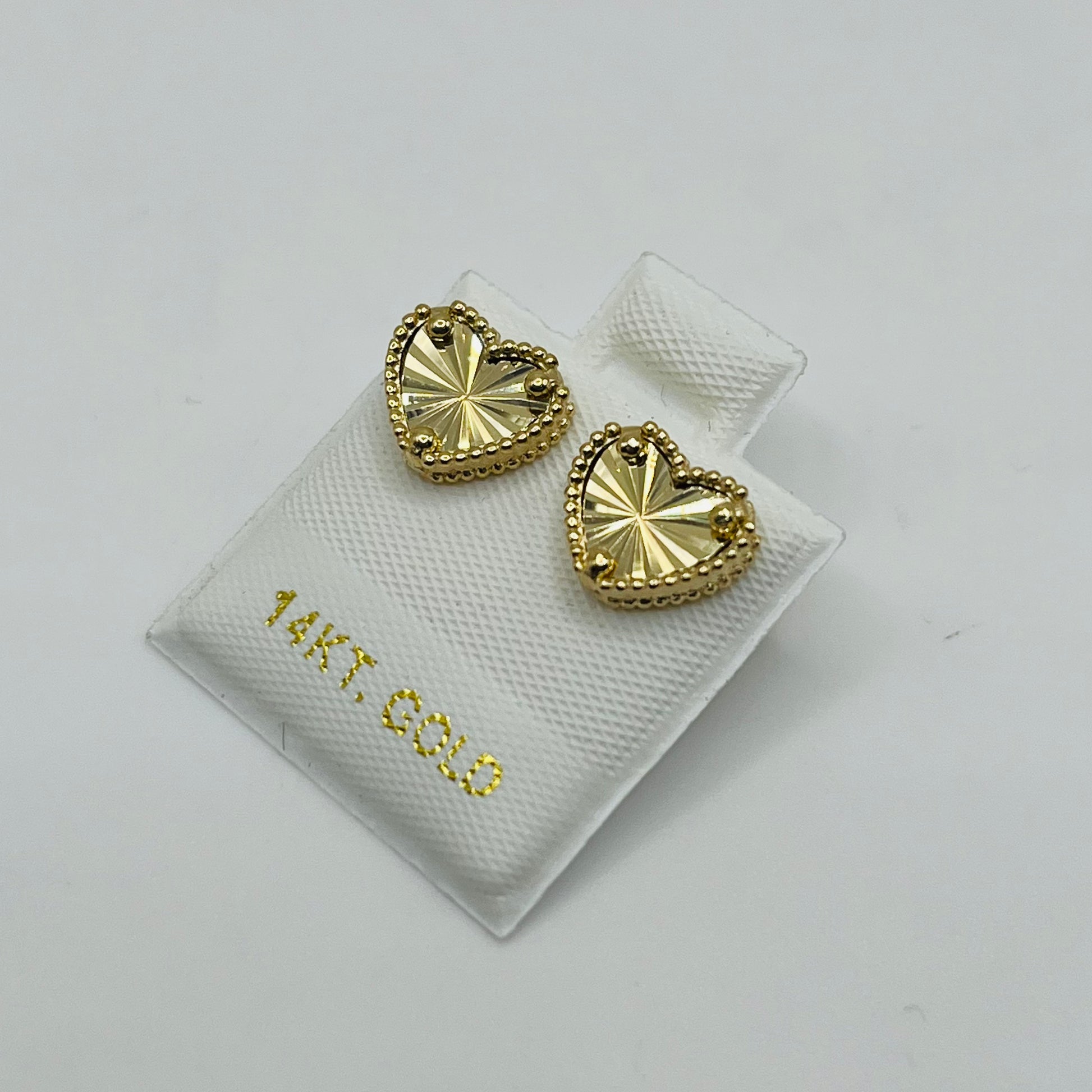 These 14k Gold Fancy Heart Earrings showcase a stunning mirror-cut design that beautifully reflects light, adding a radiant sparkle to your look. Crafted for both elegance and everyday wear, they effortlessly complement any outfit while symbolizing love and charm. Perfect for gifting or treating yourself, these earrings bring a timeless, heartfelt touch to your jewelry collection.