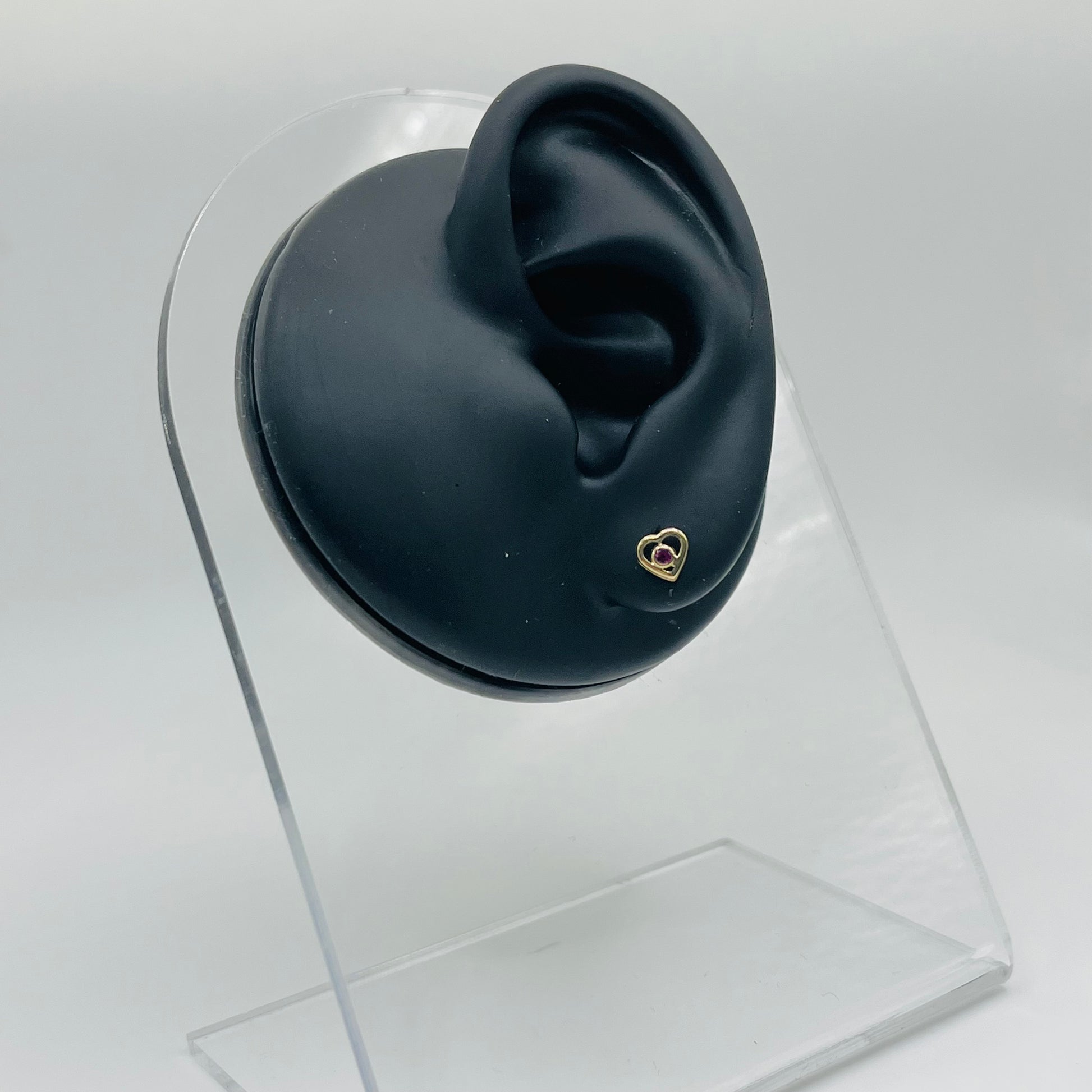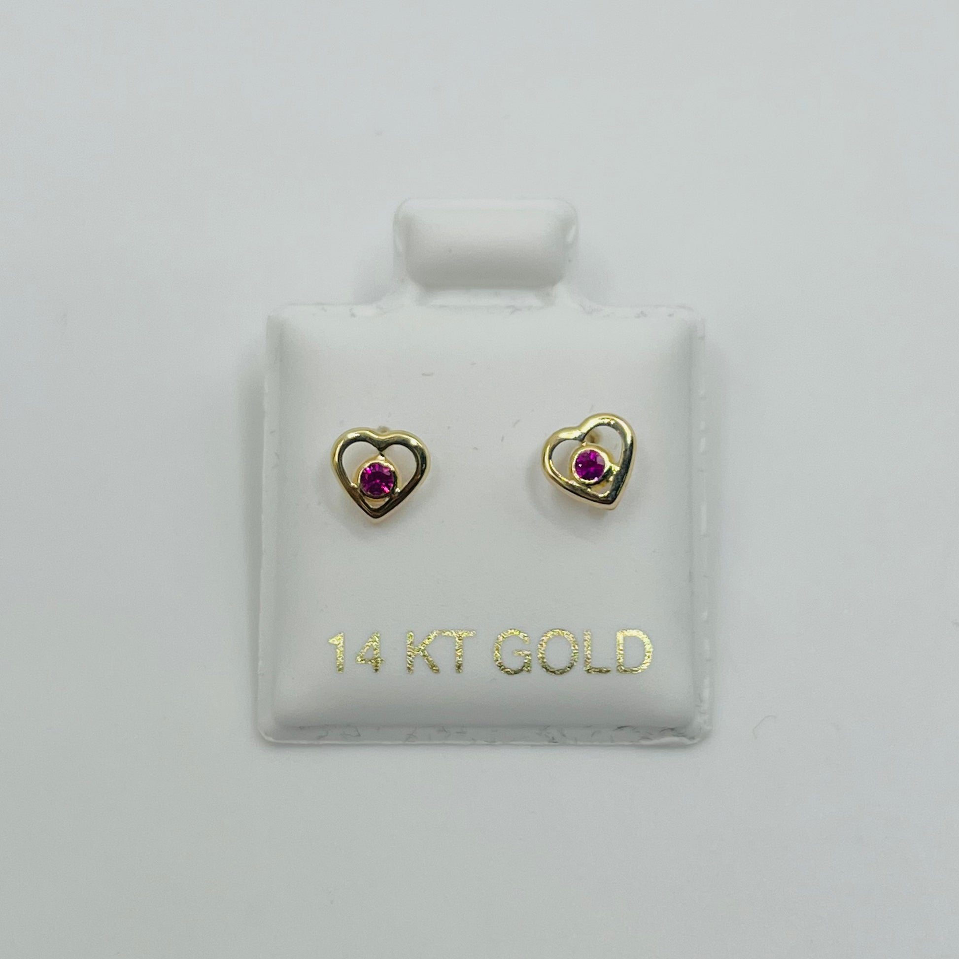 Introducing our 14k Gold Heart Bezel Screwback Earrings, the epitome of elegance. These stunning earrings feature a delicate heart bezel adorned with a pink cubic zirconia stone, adding a pop of color to any outfit. The screwback design ensures a secure and comfortable fit, making them the perfect addition to your jewelry collection. Embrace luxury with these exquisite earrings.