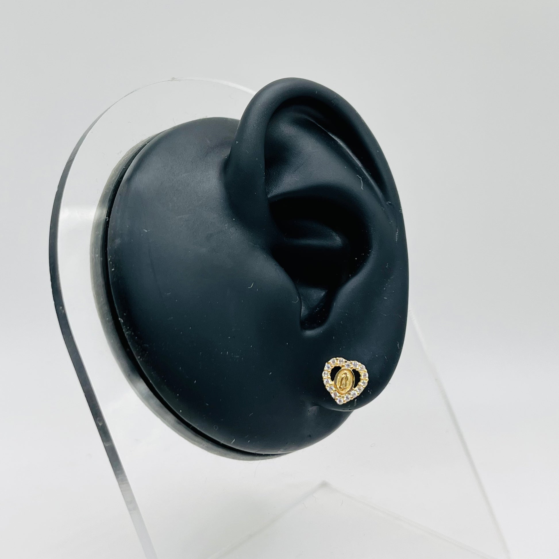 14k Gold Heart Cz Virgin Mary Baby Earrings