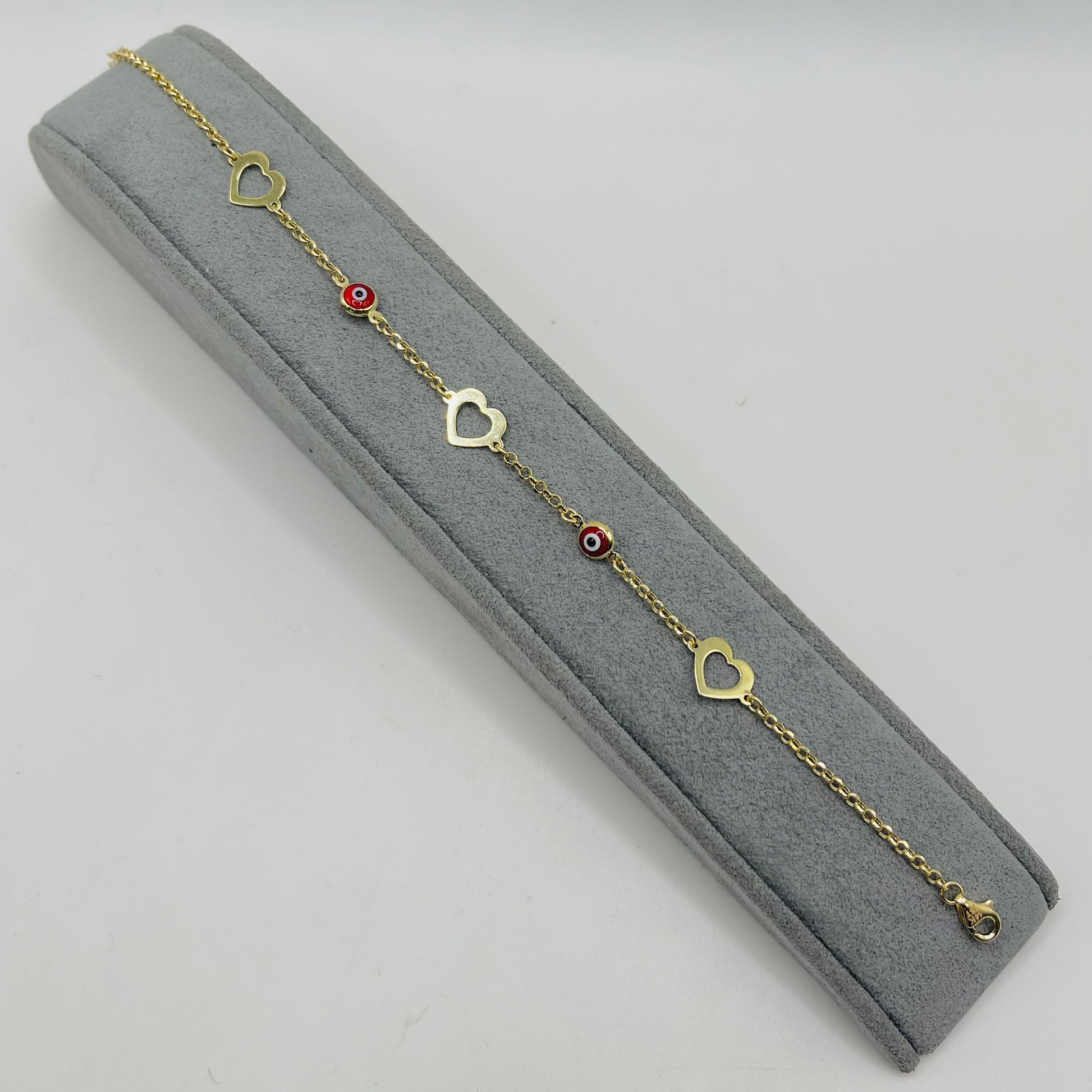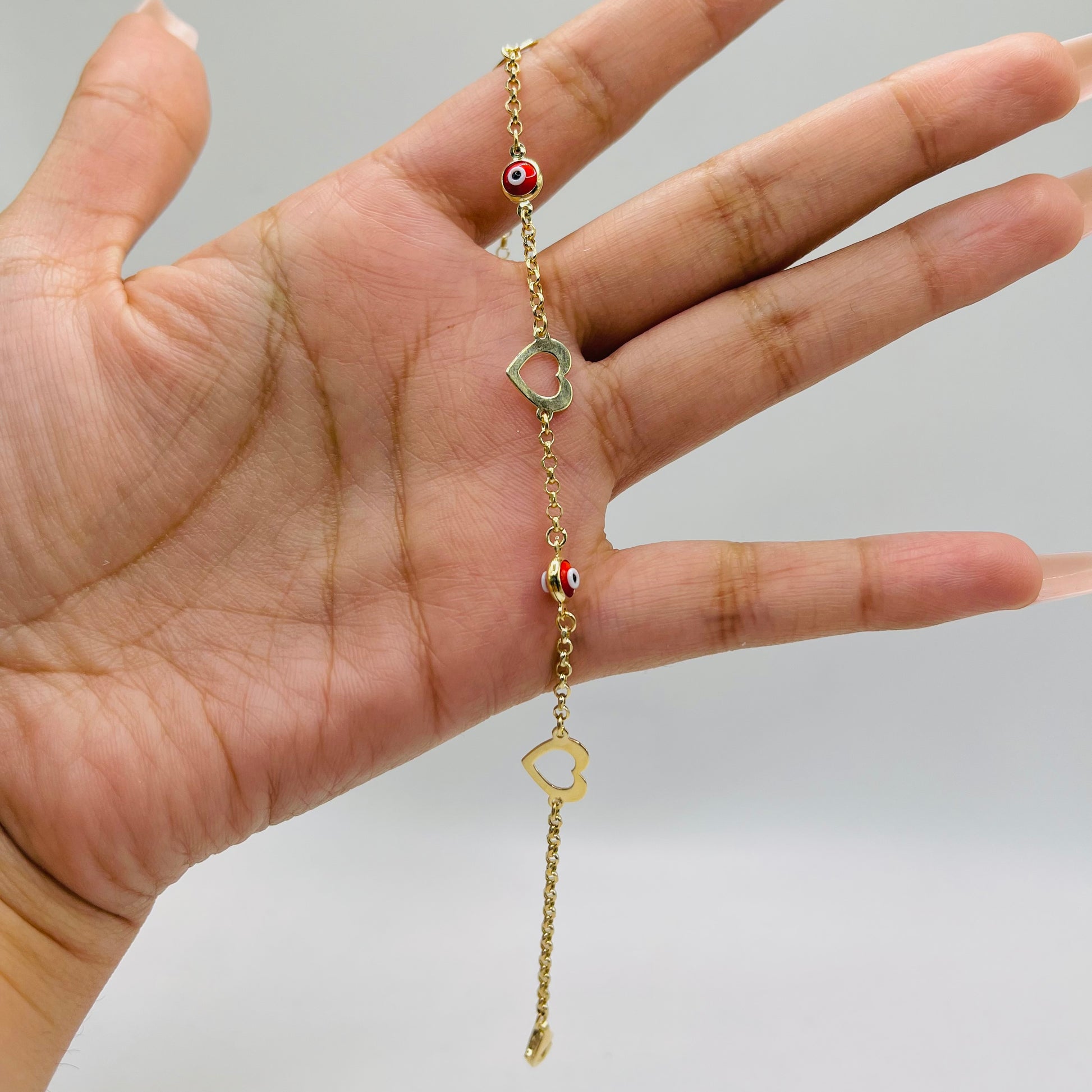 14K Gold Heart Evil Eye Bracelet