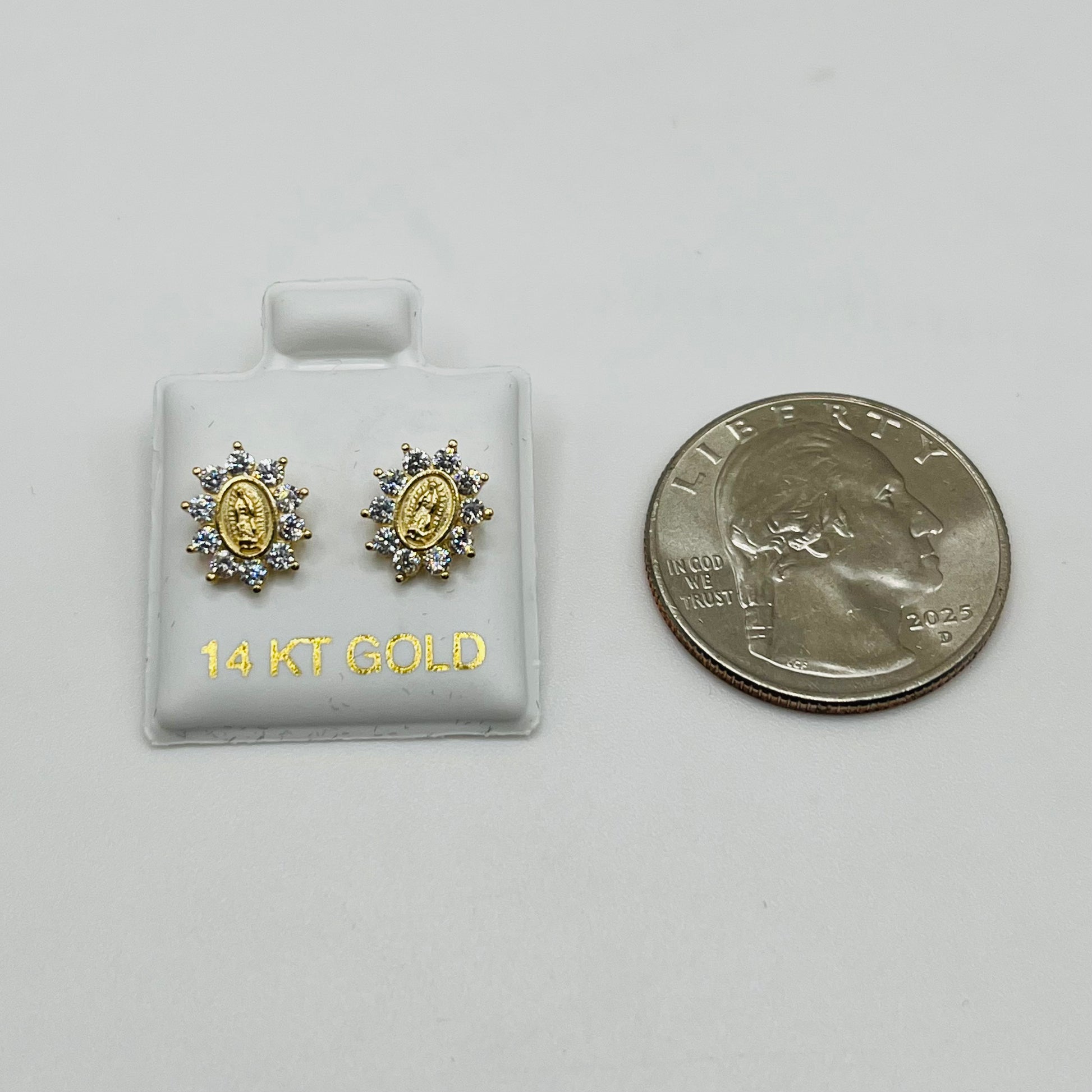 Elevate your style with these 14k Gold Immaculata Virgin Mary Earrings, featuring sparkling cubic zirconia that catches the light beautifully. Crafted with care, they offer a radiant shine and meaningful design that complements any outfit. Perfect for those seeking a blend of elegance and spiritual symbolism, these earrings make a memorable gift or cherished personal accessory.