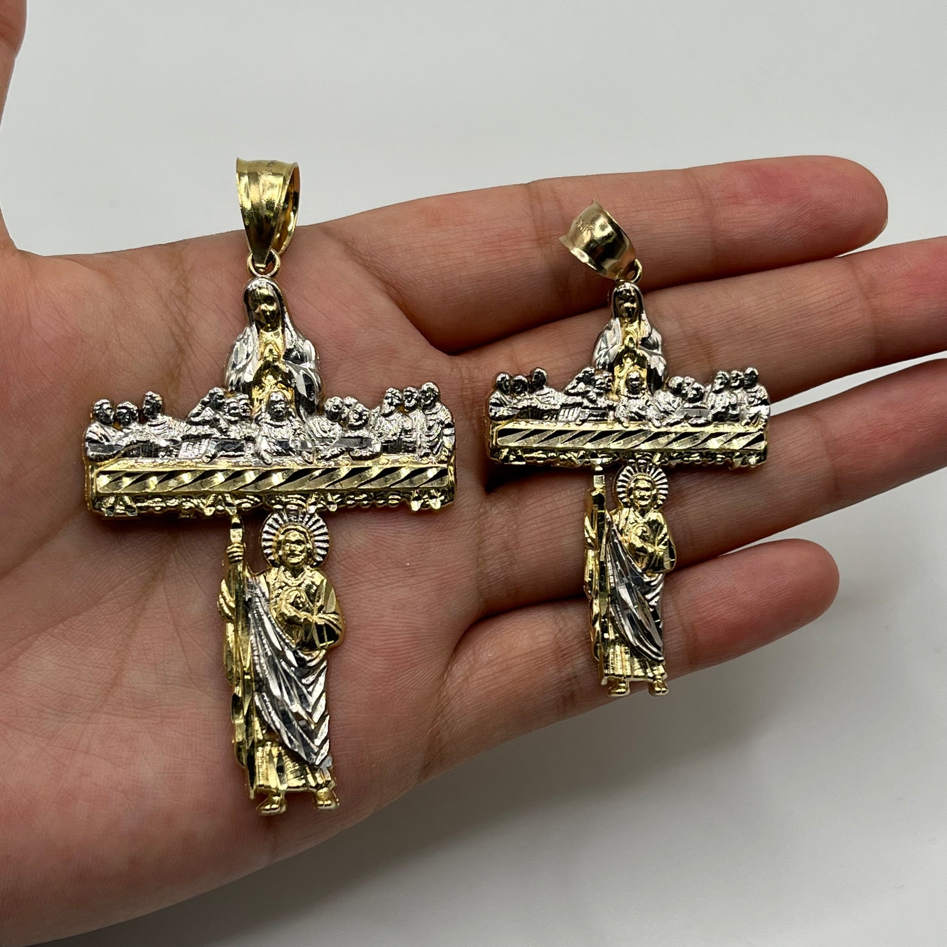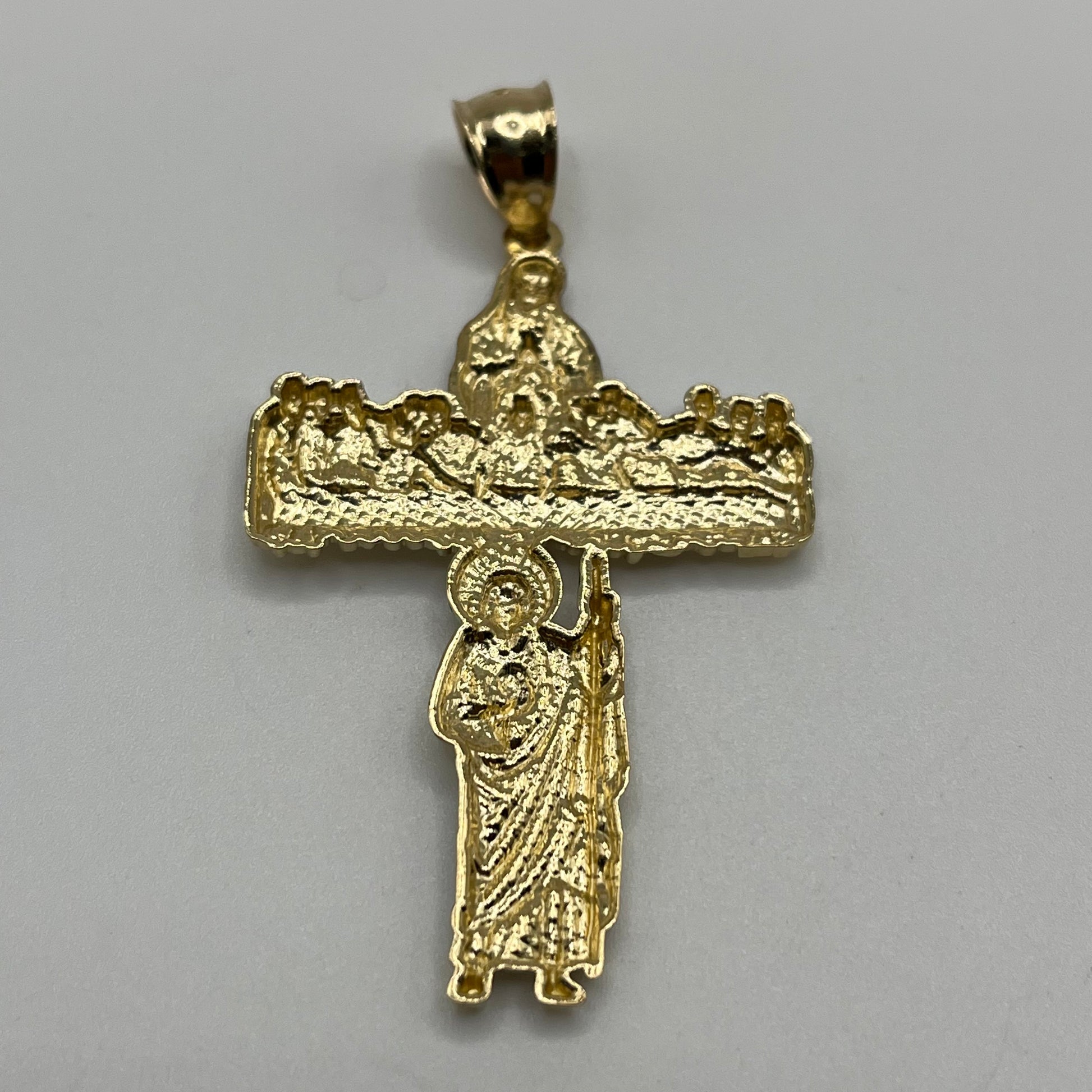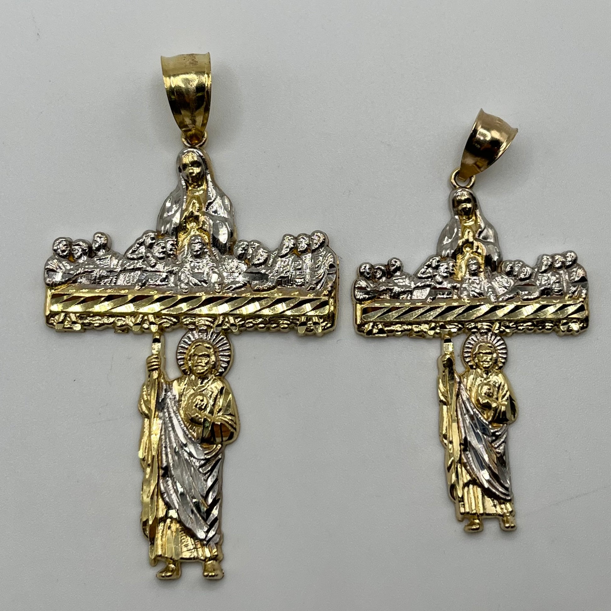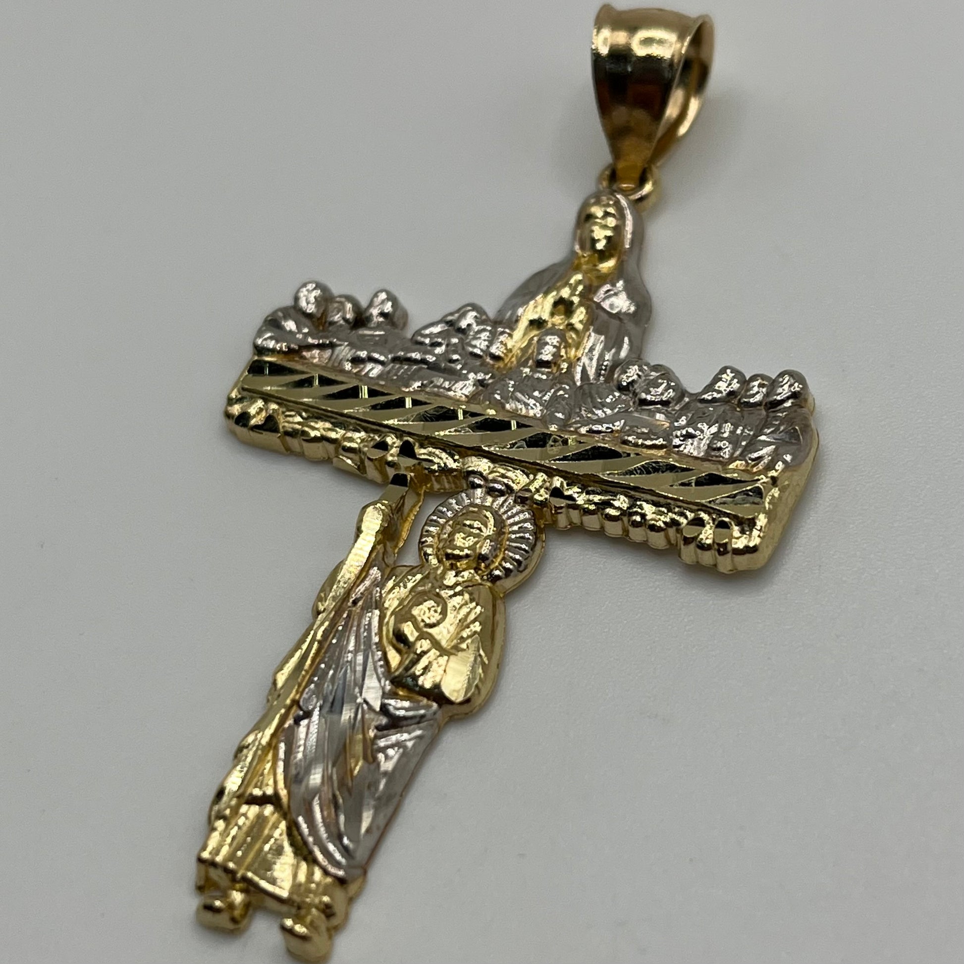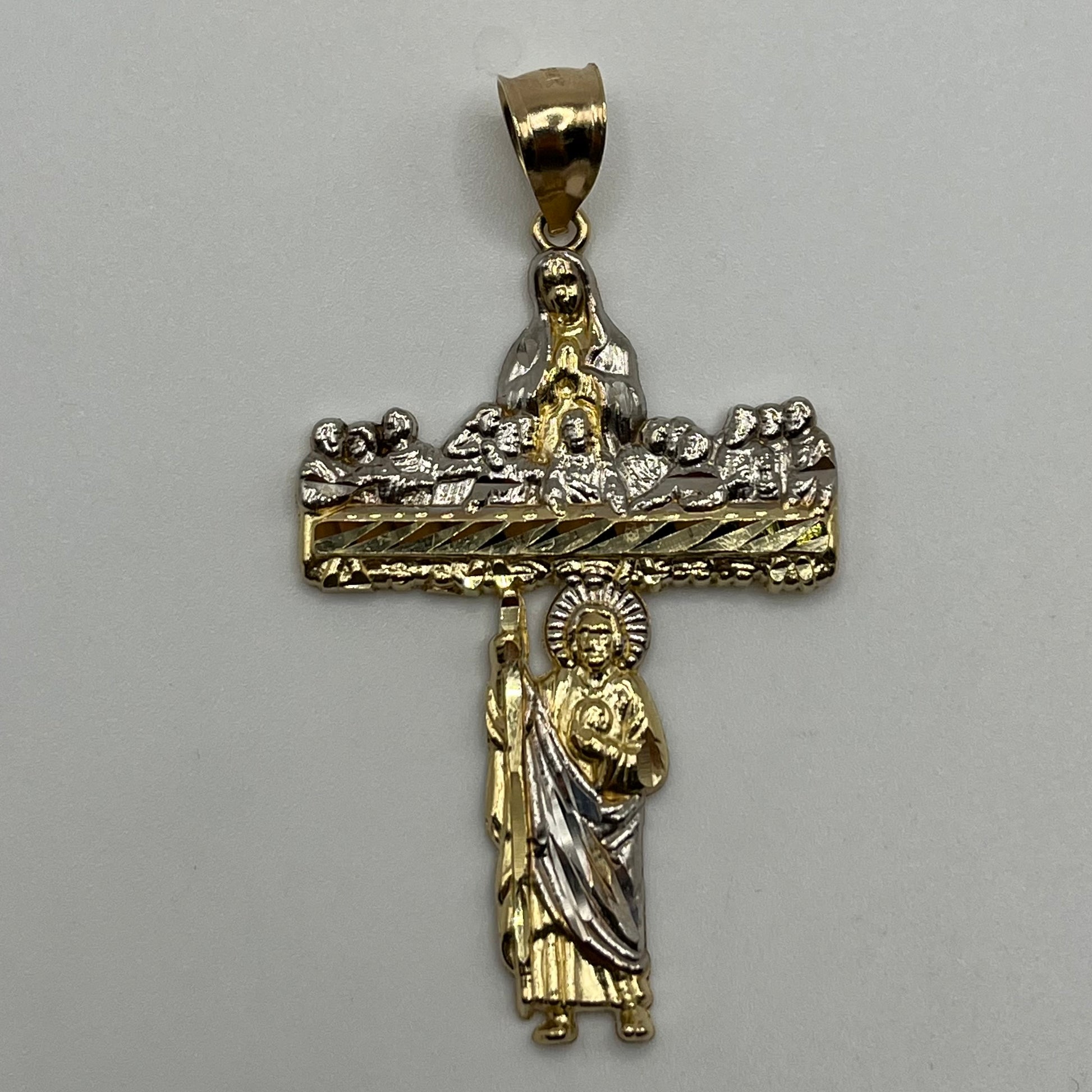 14k Gold Last Supper/ Virgin Mary/ San Judas Cross Pendant (S)