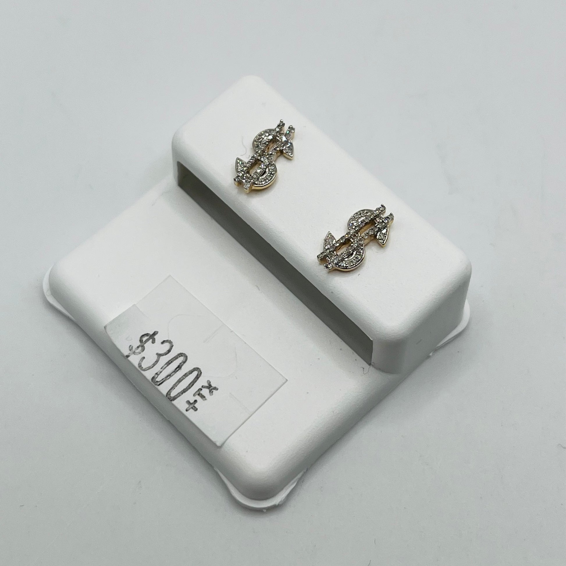 10k Gold Natural Diamond Money Sign Earrings (Screwbacks)