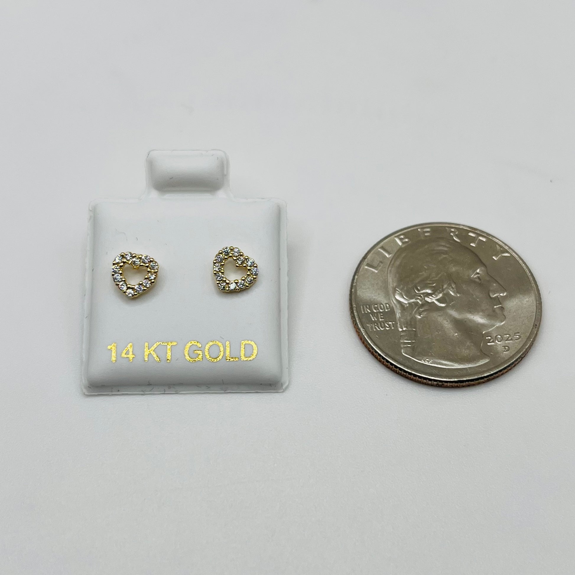 14k Gold Open Cz Heart Baby Earrings