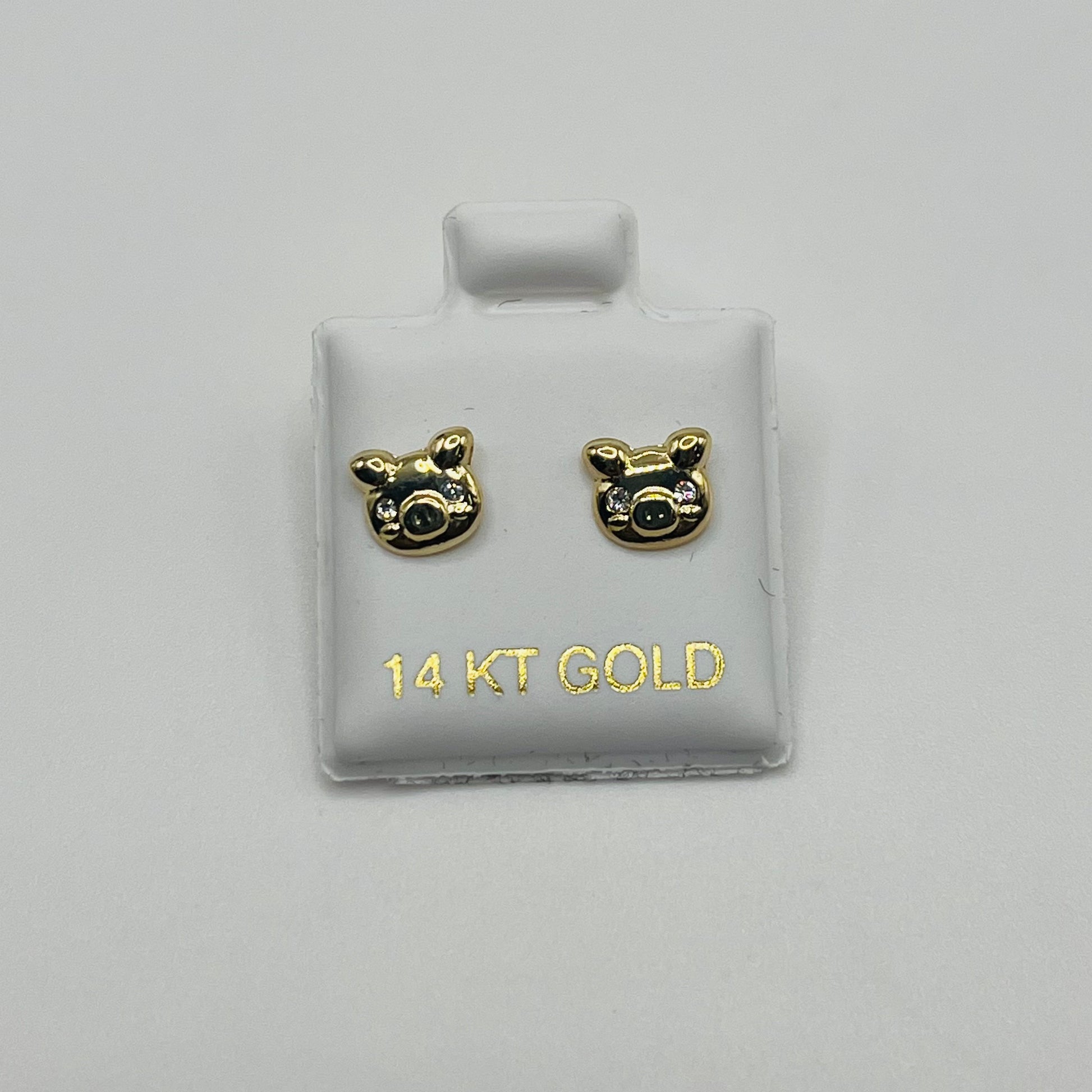 These charming 14k gold piggie baby earrings feature sparkling cubic zirconia eyes that add a touch of sparkle to your little one’s look. Designed with secure screwback closures, they provide both comfort and safety for delicate ears. Perfect as a thoughtful gift or everyday accessory, these earrings combine adorable design with lasting quality.