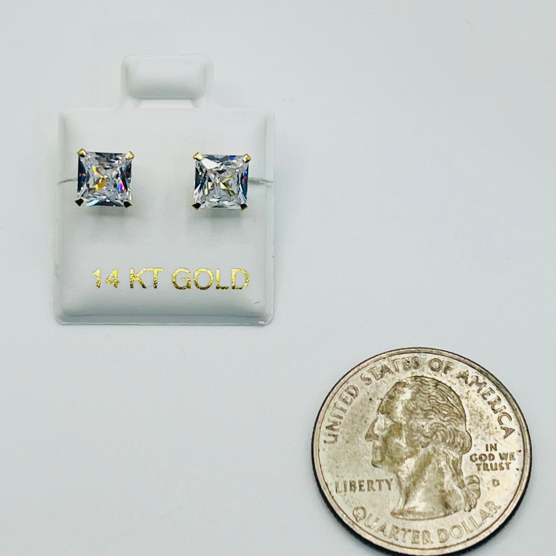 Dress your ears with effortless elegance in our 14K Gold Square Cubic Zirconia Studs, each boasting a chic 7mm size and small screw backings. Crafted with precision in genuine 14K gold, these studs redefine sophistication. The princess cut cubic zirconia design adds a modern twist, creating a timeless yet contemporary accessory. Elevate your ear game with the brilliance of 14K gold and the sparkle of cubic zirconia – a perfect blend of luxury and versatility for any occasion.