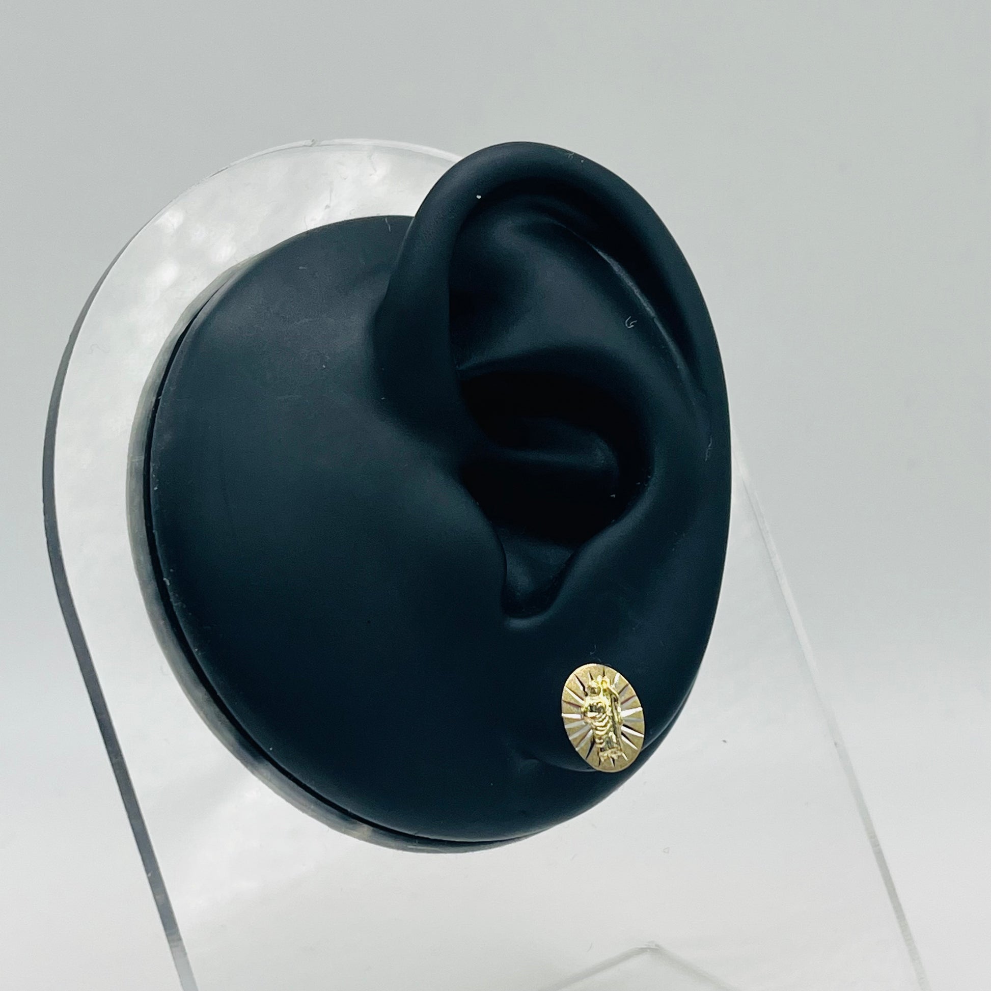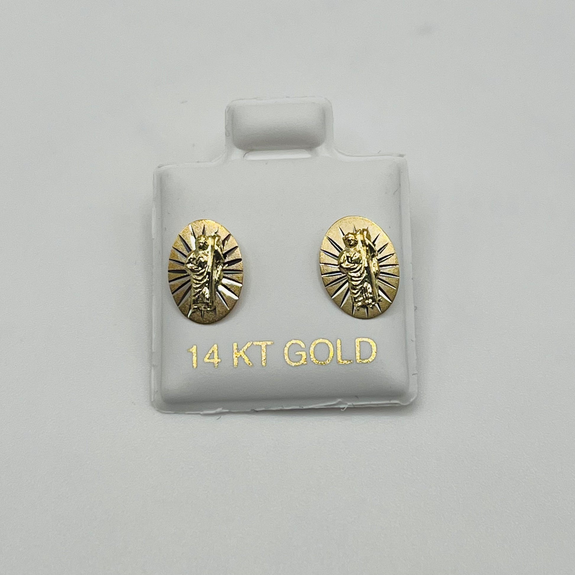Elevate your style with these 14k Gold San Judas DC Baby Earrings, featuring a unique oval design with a matte finish and secure screw-back closures. These earrings offer both sophistication and comfort, making them perfect for daily wear or special occasions. Durable and elegant, they bring a subtle statement of faith and fashion to your jewelry collection.