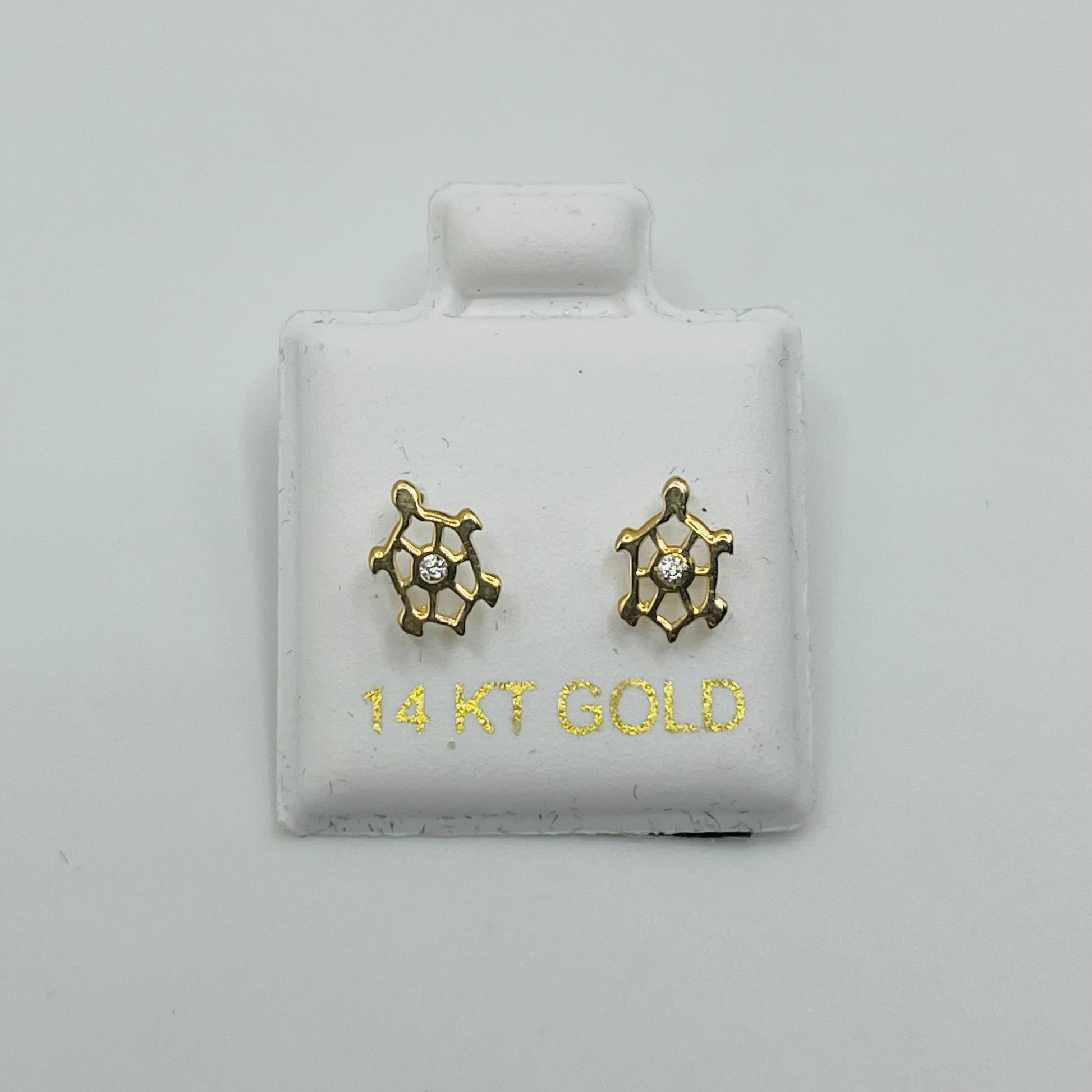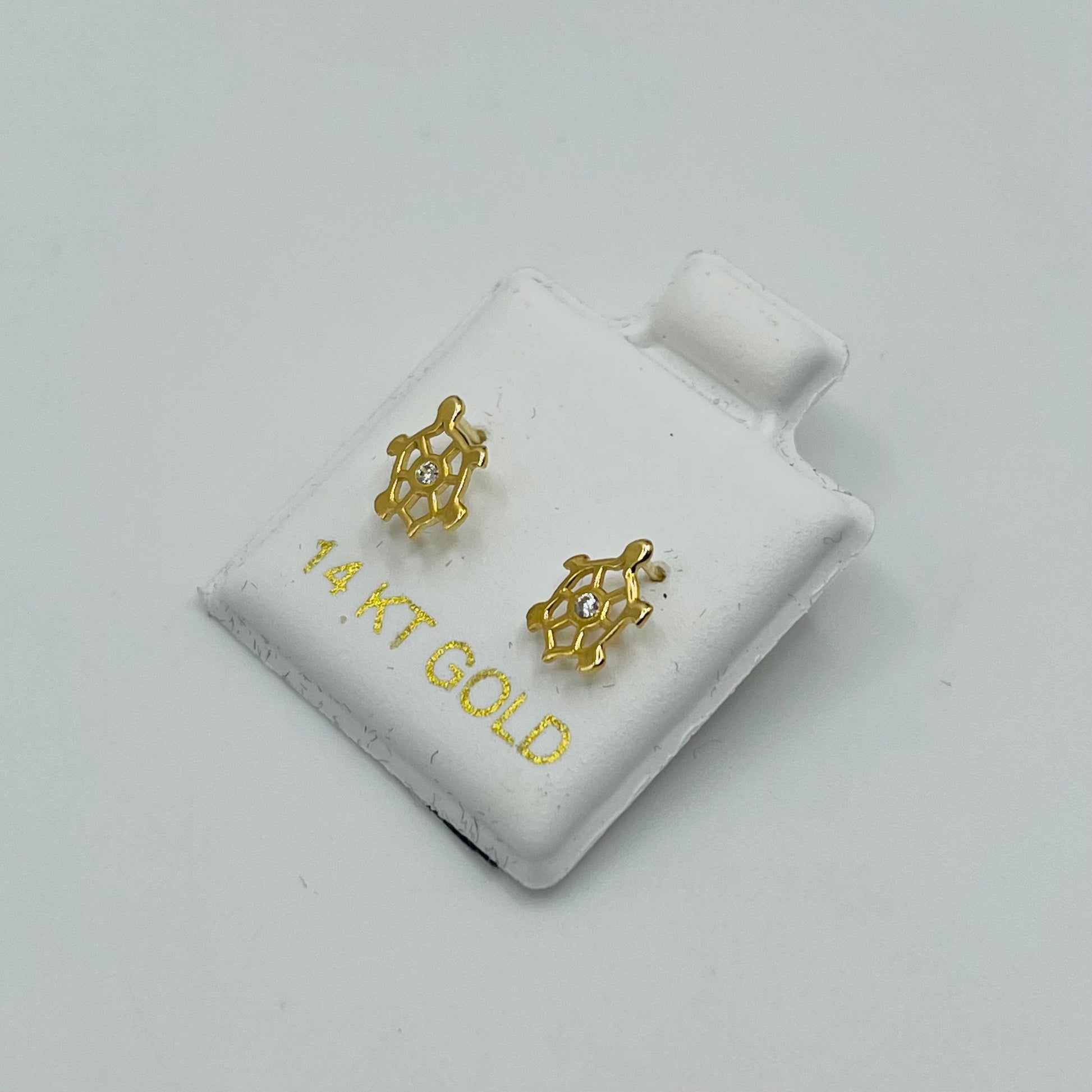 Transform your look with these 14k Gold Turtle Cz Screwback Earrings. With intricate turtle design and sparkling cubic zirconia stones, they add a touch of elegance to any outfit. The screwback closure ensures a secure fit. Elevate your style with these luxurious earrings.