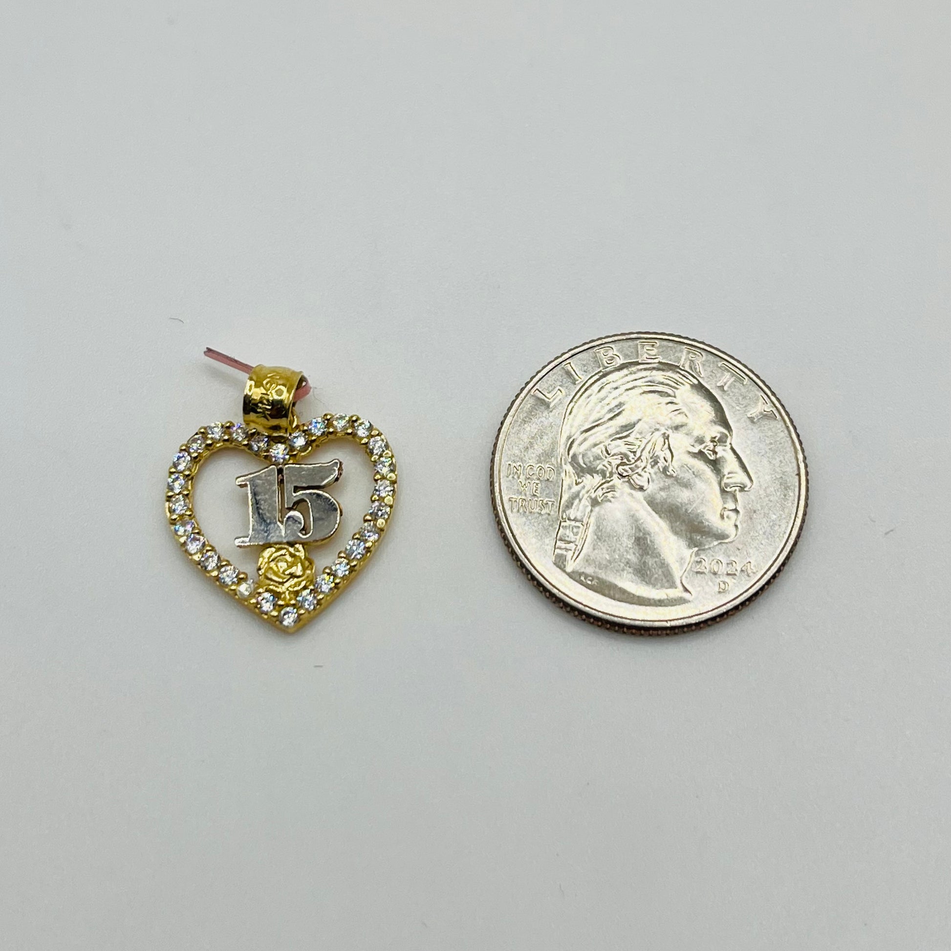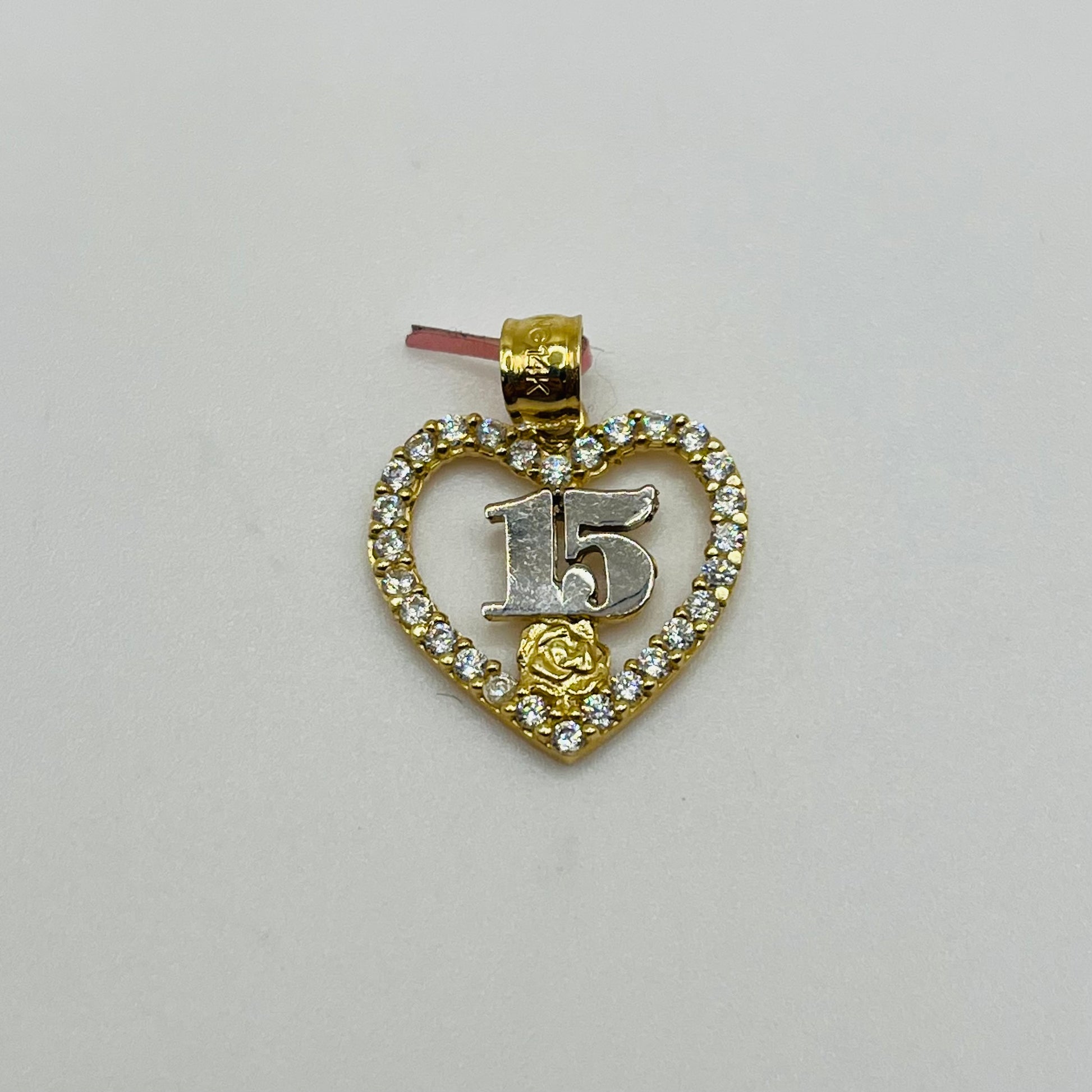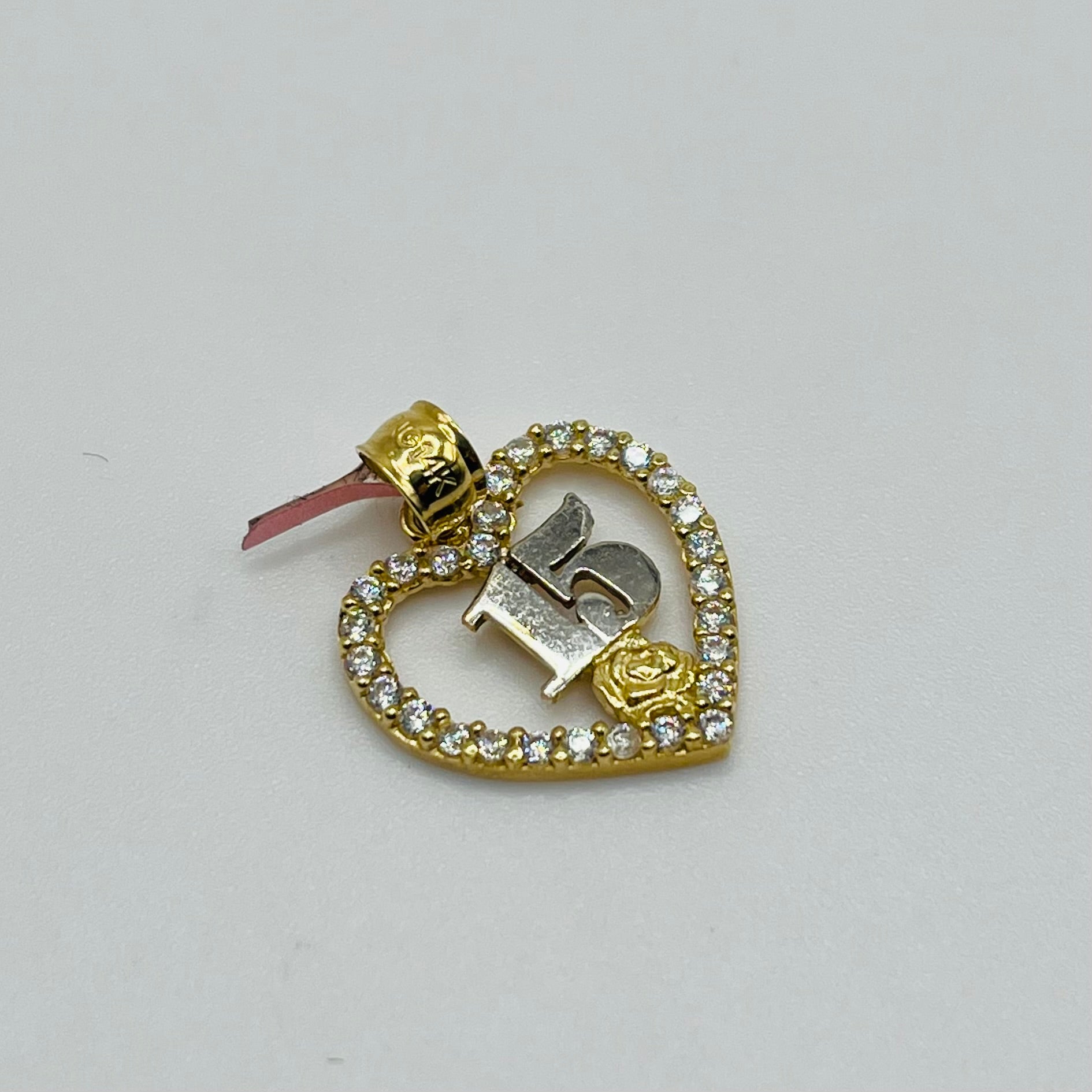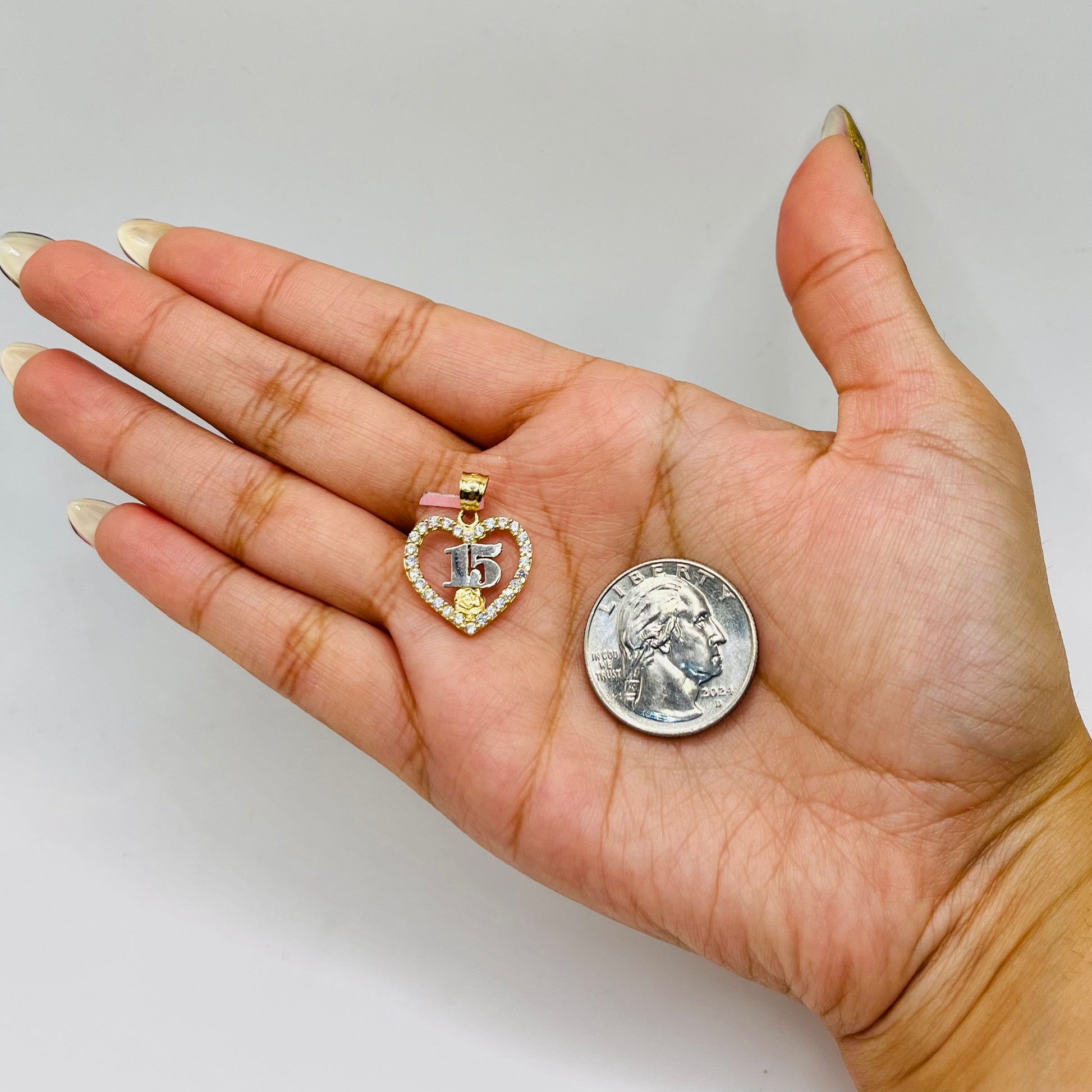 This stunning 14k gold pendant features a heart fully encrusted with sparkling cubic zirconia, set in white gold at its center. Below, a delicate yellow gold rose adds a warm, elegant contrast. The two-tone design beautifully combines brilliance and charm, making it a perfect piece to express love and sophistication.
