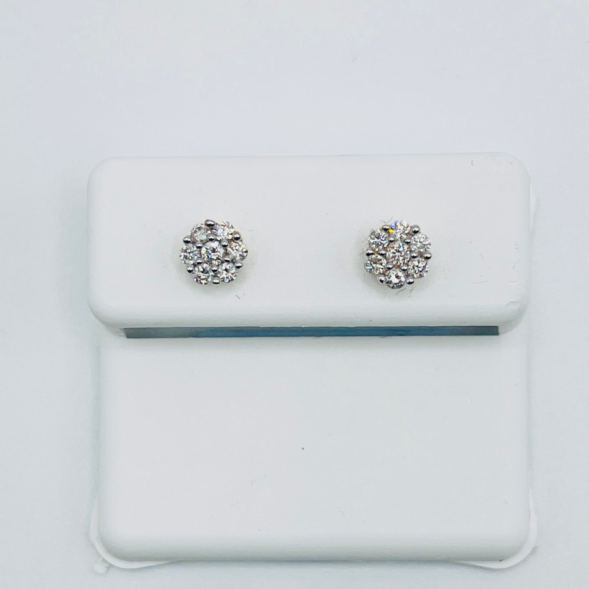 These 5mm 7 stone natural diamond flower earrings are 0.33 carats. The earrings are set in 10K yellow gold and secured with screwbacks.