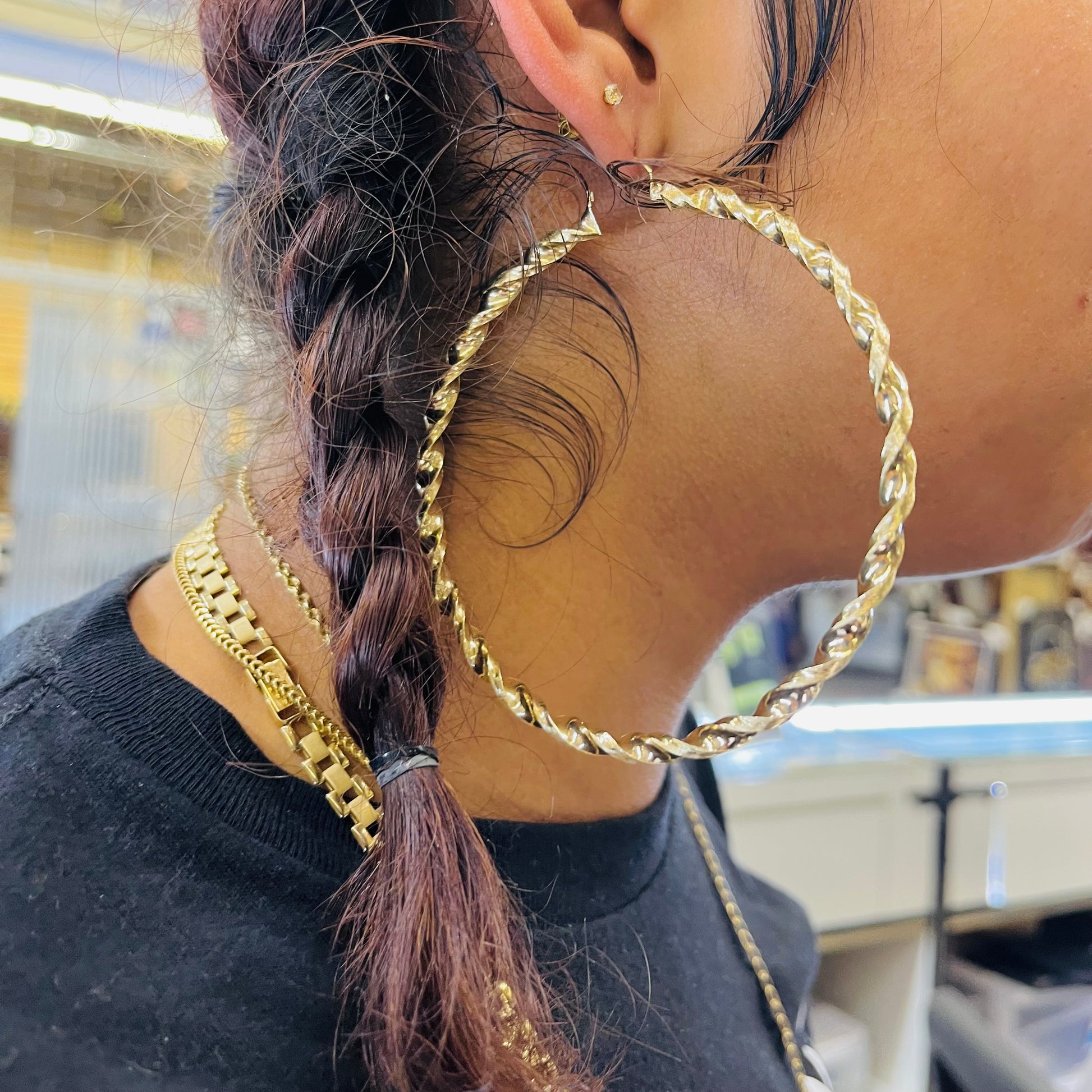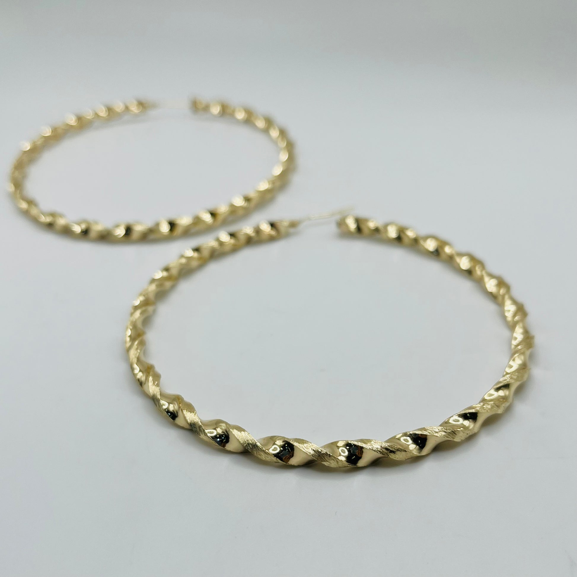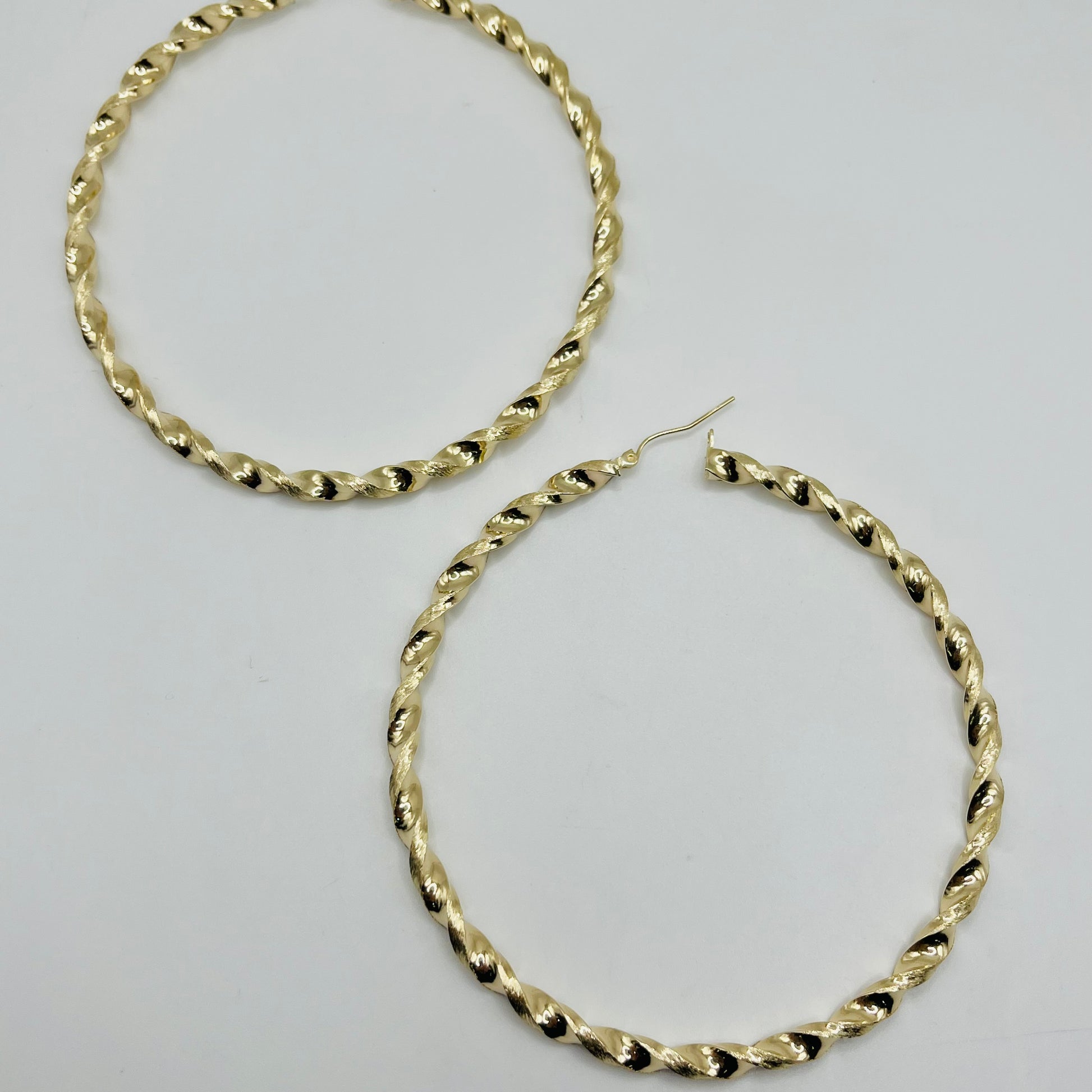 10K Gold 4.3mm Twist Hoop Earrings (3.25" diameter)