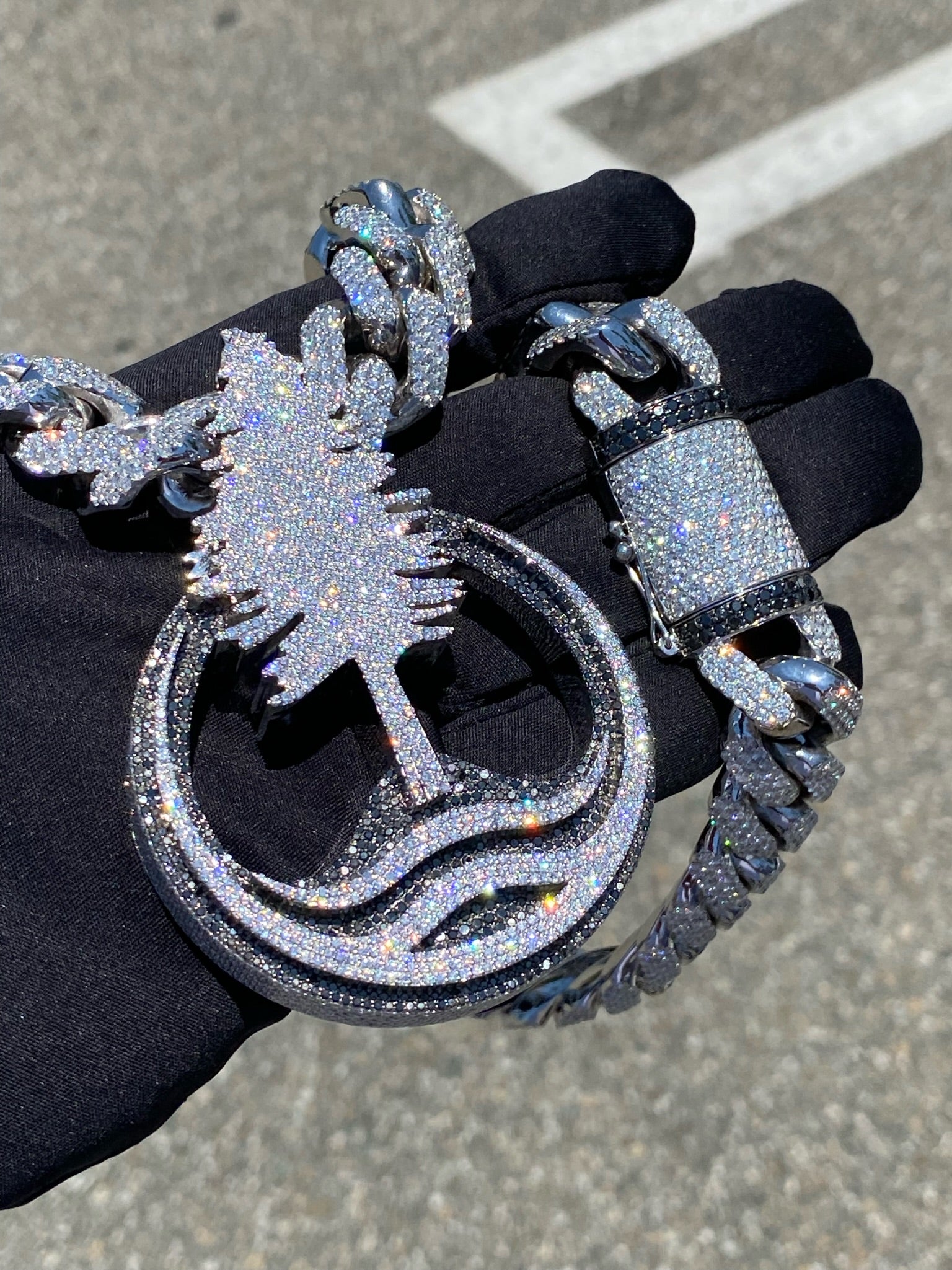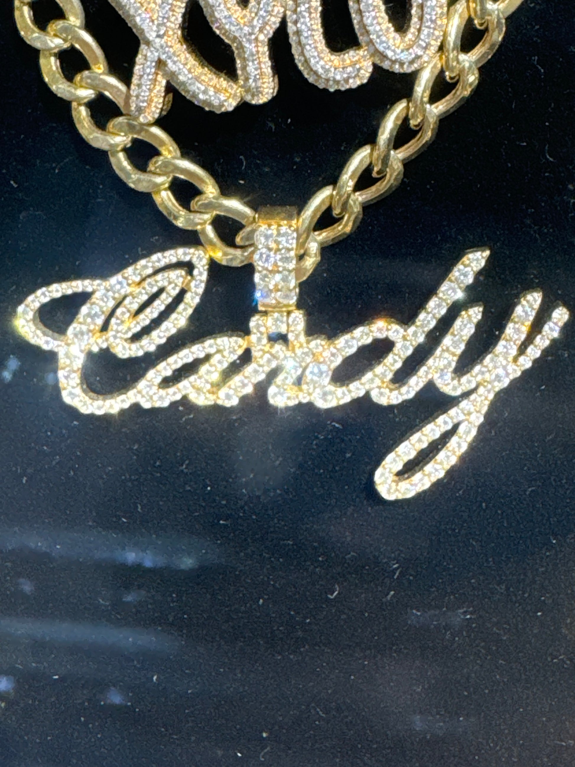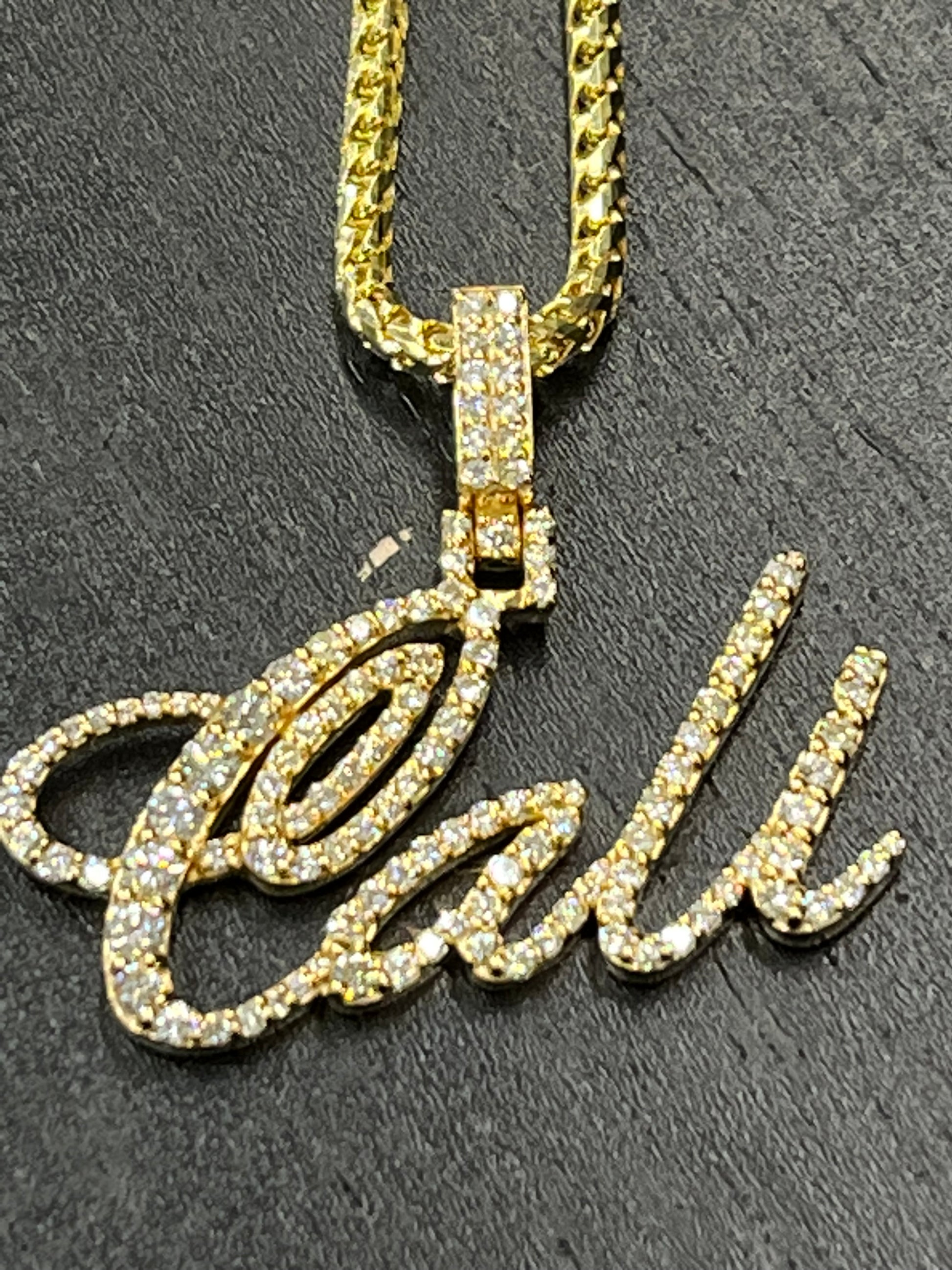 We love to make custom diamond pieces Bussed down Miami Cubans to Sports teams, Company Logos, Custom nameplates, or anything you can think of that you want represented in high quality Diamonds and Gold!!!! Contact us to get a project started!