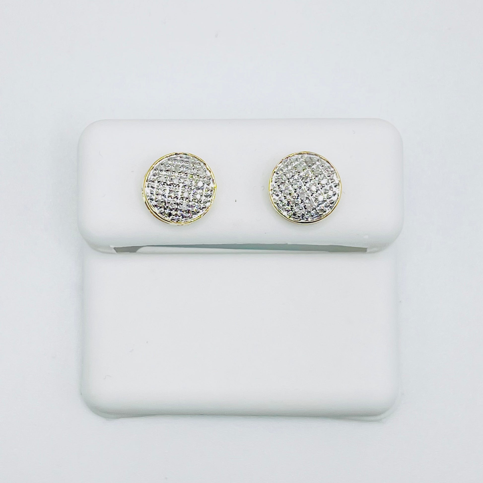 These 0.10 carat total weight micropave natural diamond earrings are set in 10K gold. These earrings are secured with screwbacks.