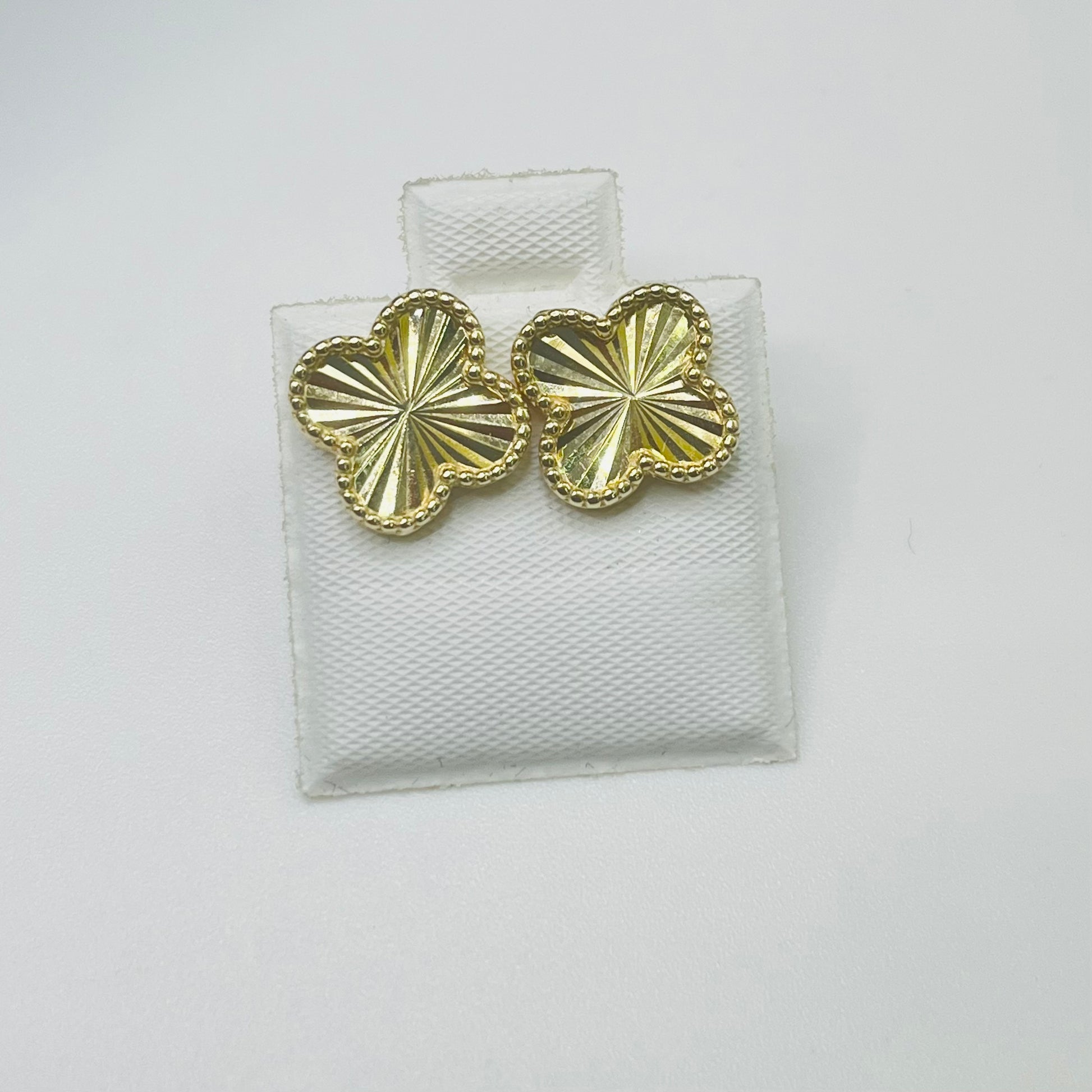 Expertly crafted from 10k gold, these Fancy Clover Earrings feature a unique and stylish mirror cut design. The intricate details of the clover shape add a touch of elegance to any outfit. Made from high-quality materials, these earrings are a perfect addition to any jewelry collection.